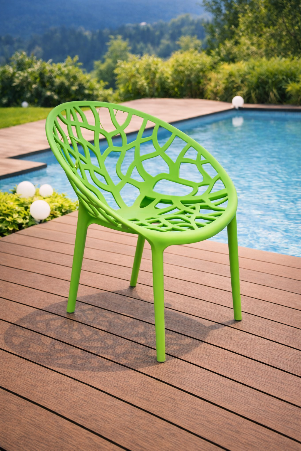 Зеленият цвят внася свежест и природна красота във всяко пространство. Модерният дизайн на стола Джина се вписва перфектно в съвременни градински обстановки и добавя цветен акцент към вашия екстериор или интериор.