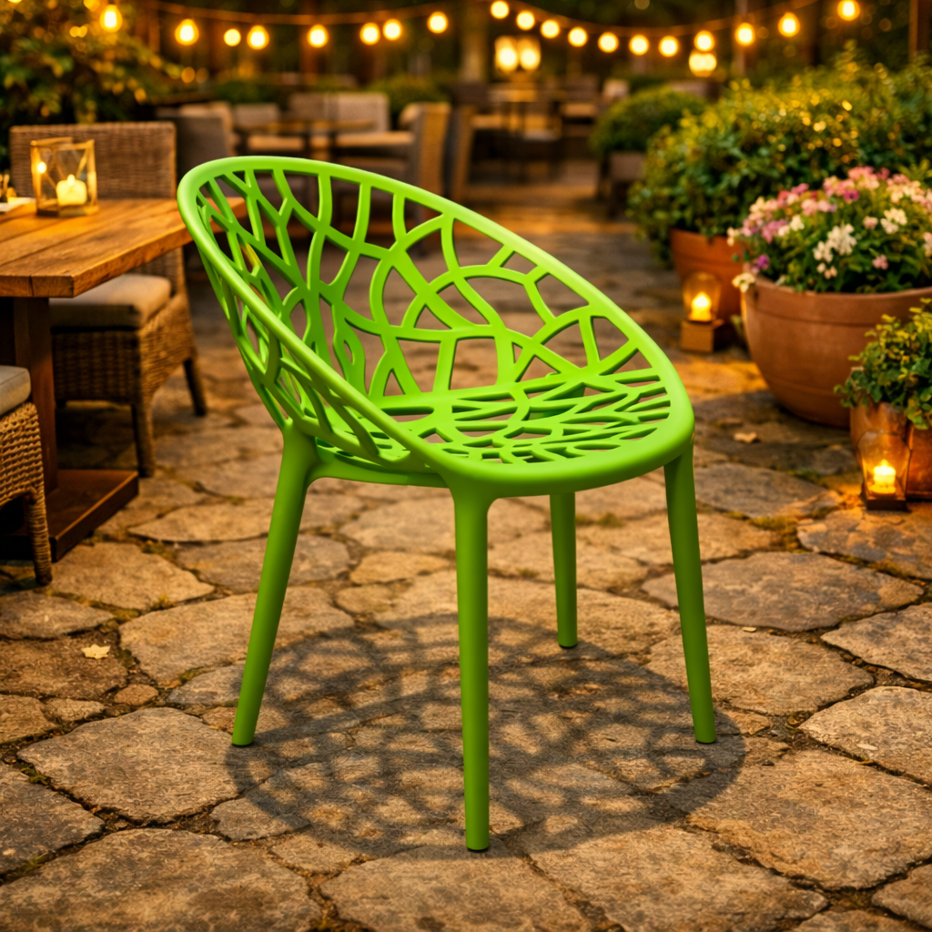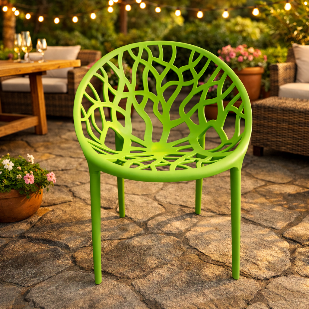 Създайте уютна и свежа градинска обстановка със стола Джина в зелен цвят!