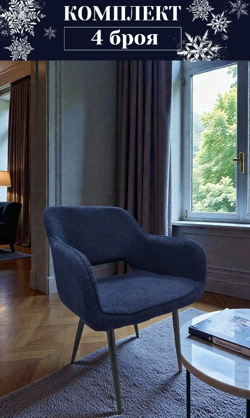 Кресло Амадео/ букле тъмно син Комплект 4 броя