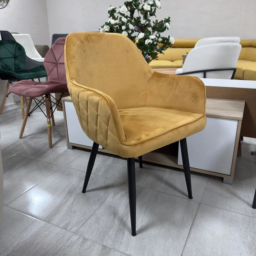 Трапезният стол Алба е перфектното решение за вашата трапезария, кухня или дневна. Изработен с висококачествена жълта кадифена тапицерия, този стол съчетава луксозен вид, комфорт и модерен дизайн.