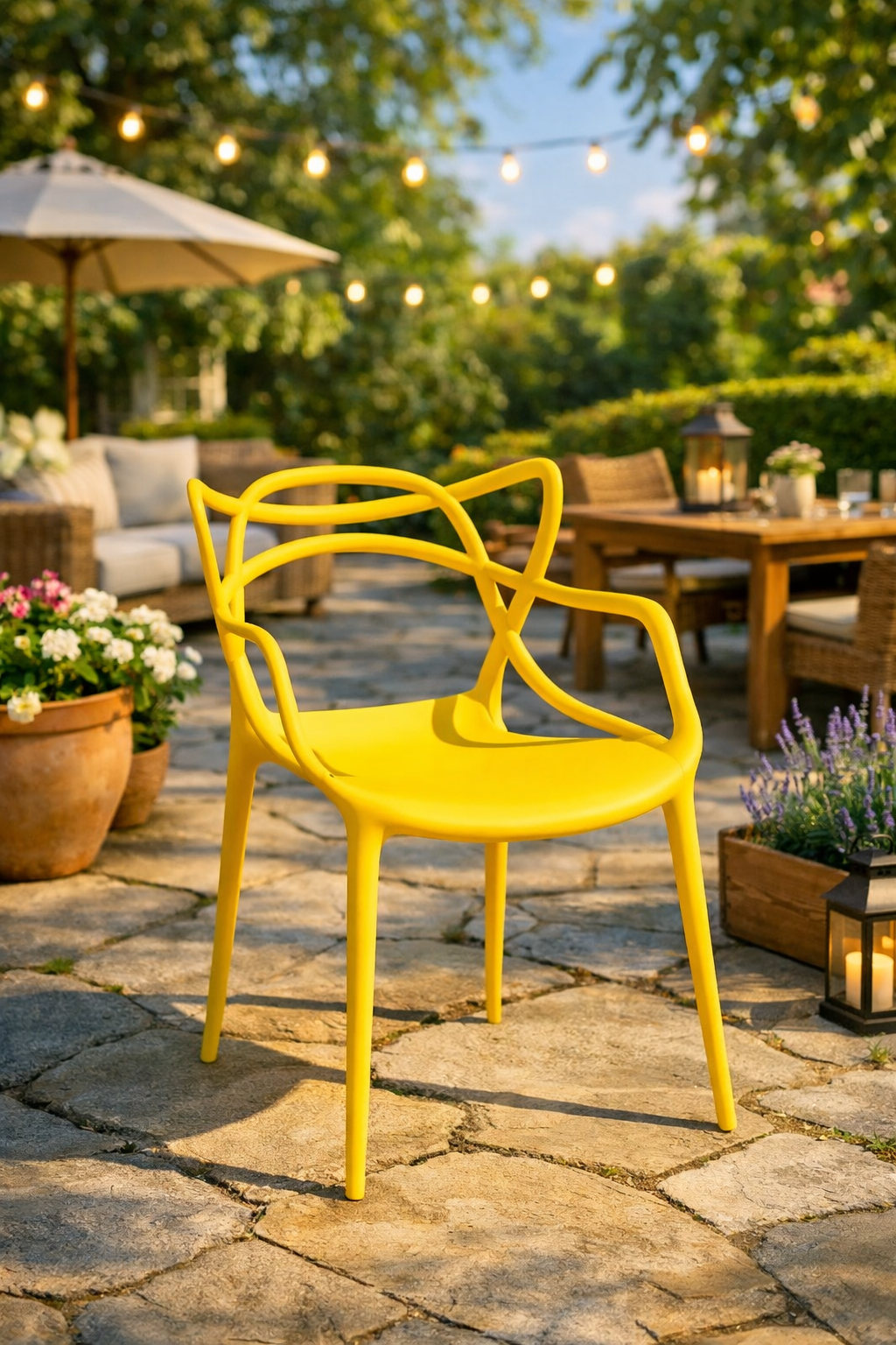 Благодарение на устойчивостта си на атмосферни влияния, столът Виена е перфектен за градински обстановки. Не се влияе от дъжд, слънце или влага, и запазва своя красив вид през цялата година. Жълтият цвят добавя слънчево настроение и жизнерадостност във вашата градина.