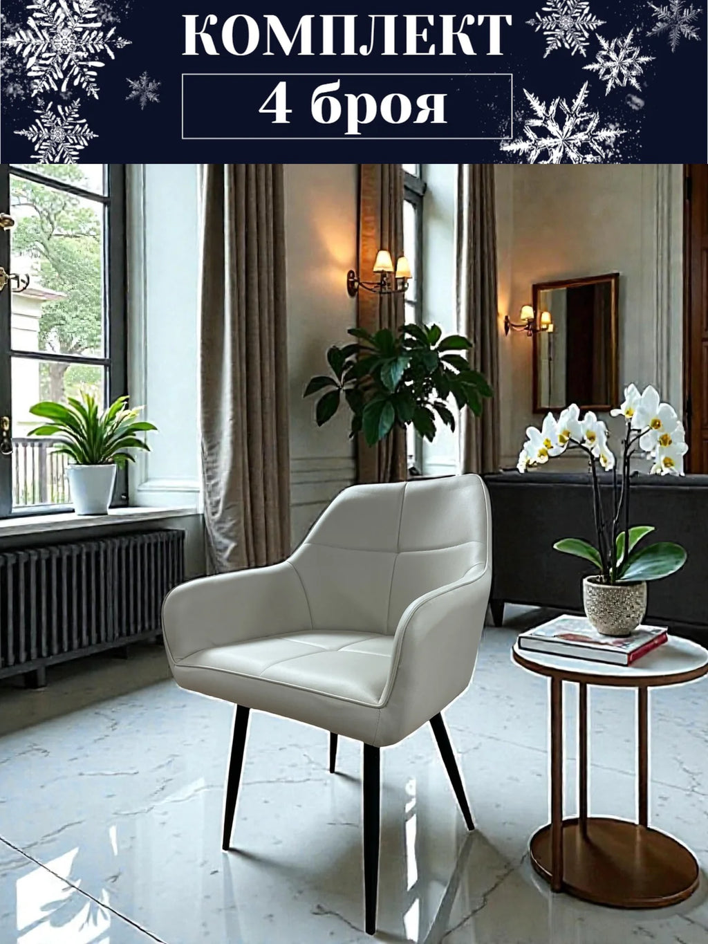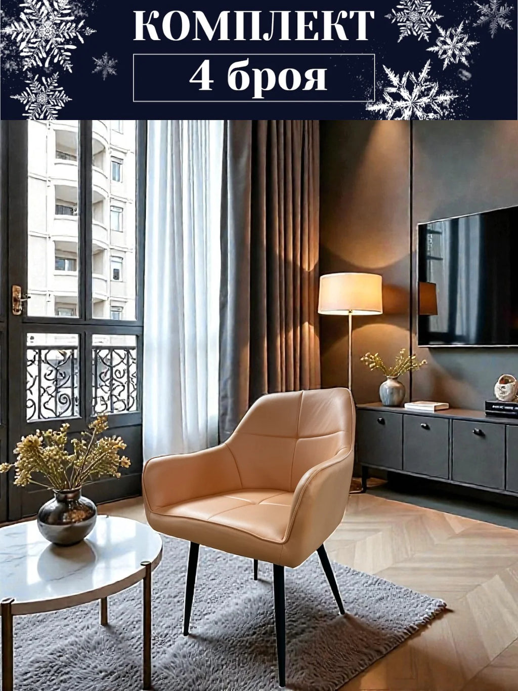Трапезен стол Деко модерен текстил в бежов цвят Комплект 4 броя