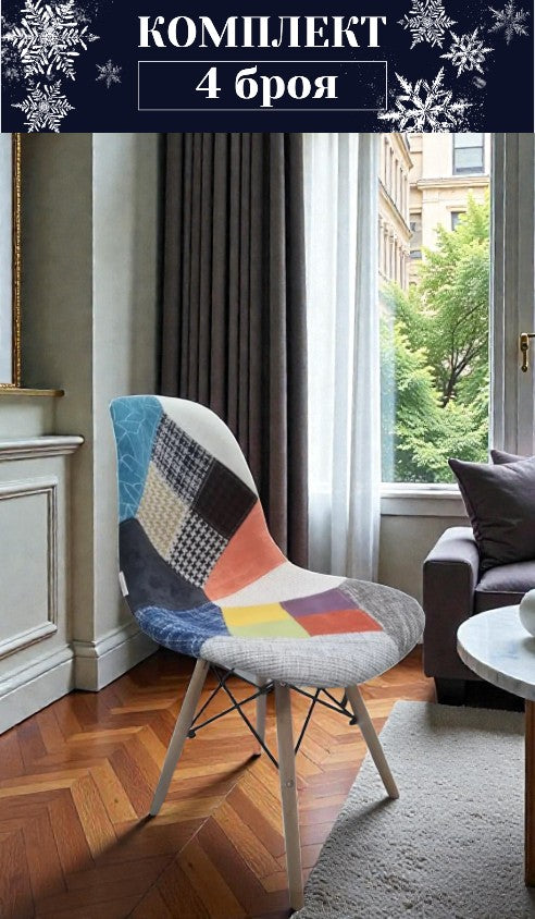 Дизайнът тип пачуърк съчетава различни цветове и шарки, които придават артистичен и уютен вид. Всеки стол е уникален по своята визия и може да бъде комбиниран с различни стилове обзавеждане – от скандинавски и бохо до съвременен и ретро интериор.