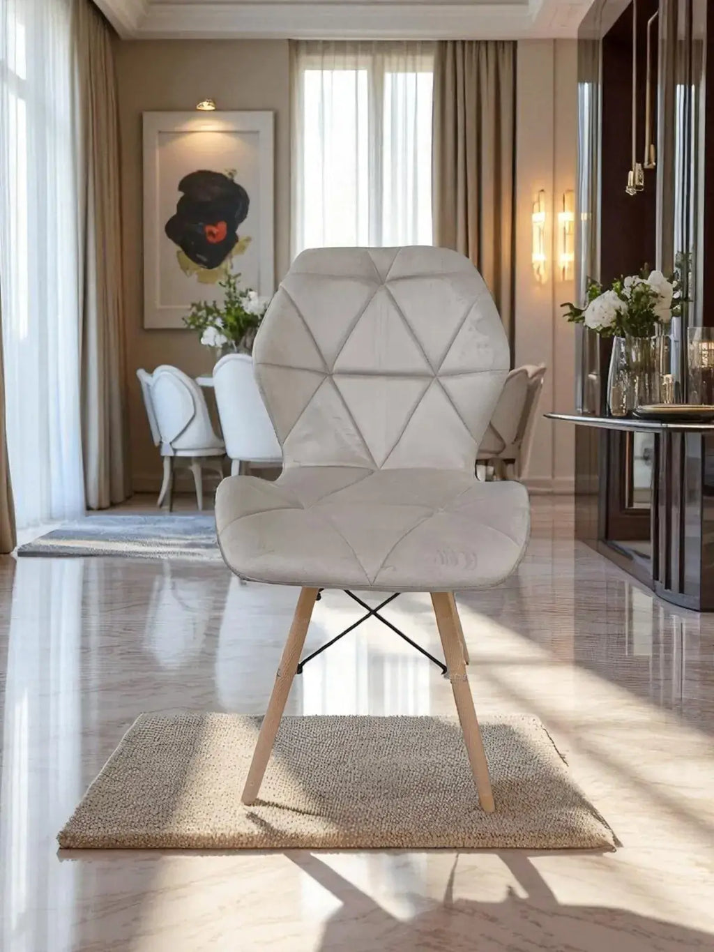 Можете да сте сигурни, че този стол е създаден да издържи. Издръжливата му конструкция гарантира, че ще остане здрав и удобен за години напред. Комбинацията от седалка от кадифе, мека пяна и крака от буково дърво придават на този стол класически дизайн, който ще остане със стил за дълго време.