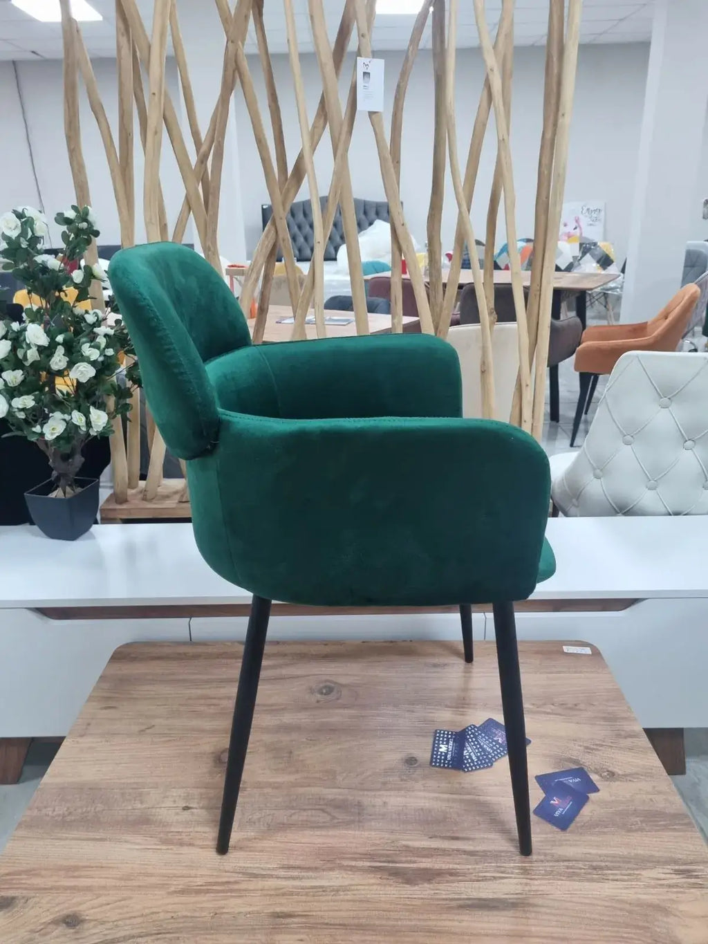 Трапезен стол “Сияна” – елегантен, компактен и създаден за уют Трапезен стол Сияна зелено кадифе