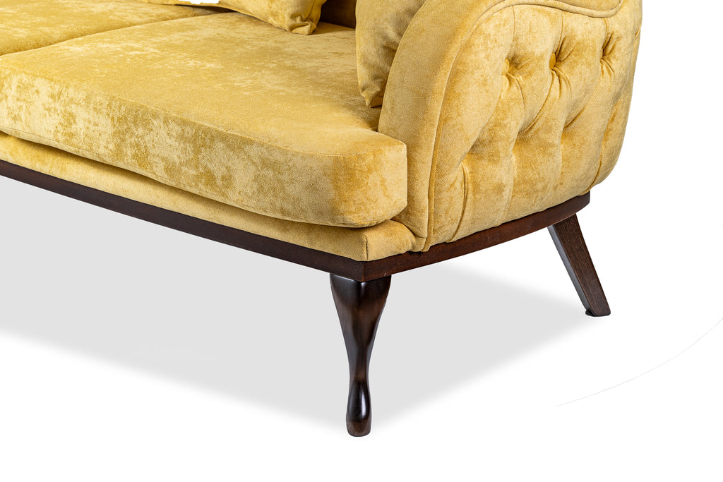 Моделите Виктория са специално проектирани, за да е възможно да бъдат поставени на централно място в помещенията, така че отзад да изглеждат също толкова приятно, колкото и отпред. Издигнати на 24 см. от пода, мебелите са особено подходящи за употреба на прахосмукачки-робот, които свободно ще преминават под тях, за да поддържат дома ви чист и свеж. Прецизно разработени за максимален комфорт и удобство при сядане, фотьойл, табуретка, двуместно и триместно канапе Виктория са чудесно допълнение към уюта във вашия дом. Може да бъдат изработени във всеки от цветовете и платовете, които ще намерите на сайта, както и по желание с дамаска от клиента. По избор краката от масивен бук може да бъдат оцветени в черно, бяло или кафяво