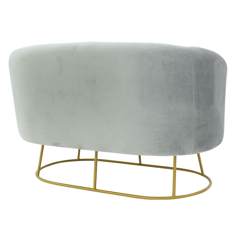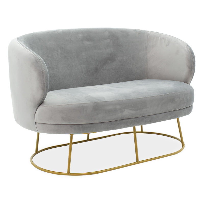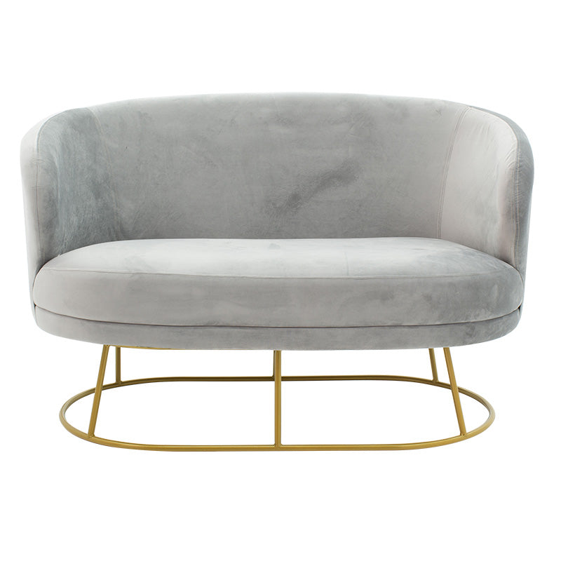 2 местен диван Gloria сиво кадифе - златист метал 132x82x83см