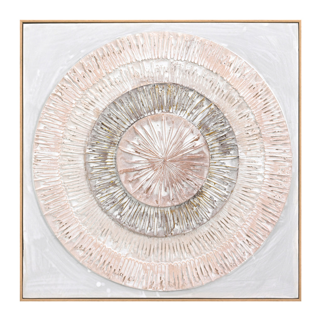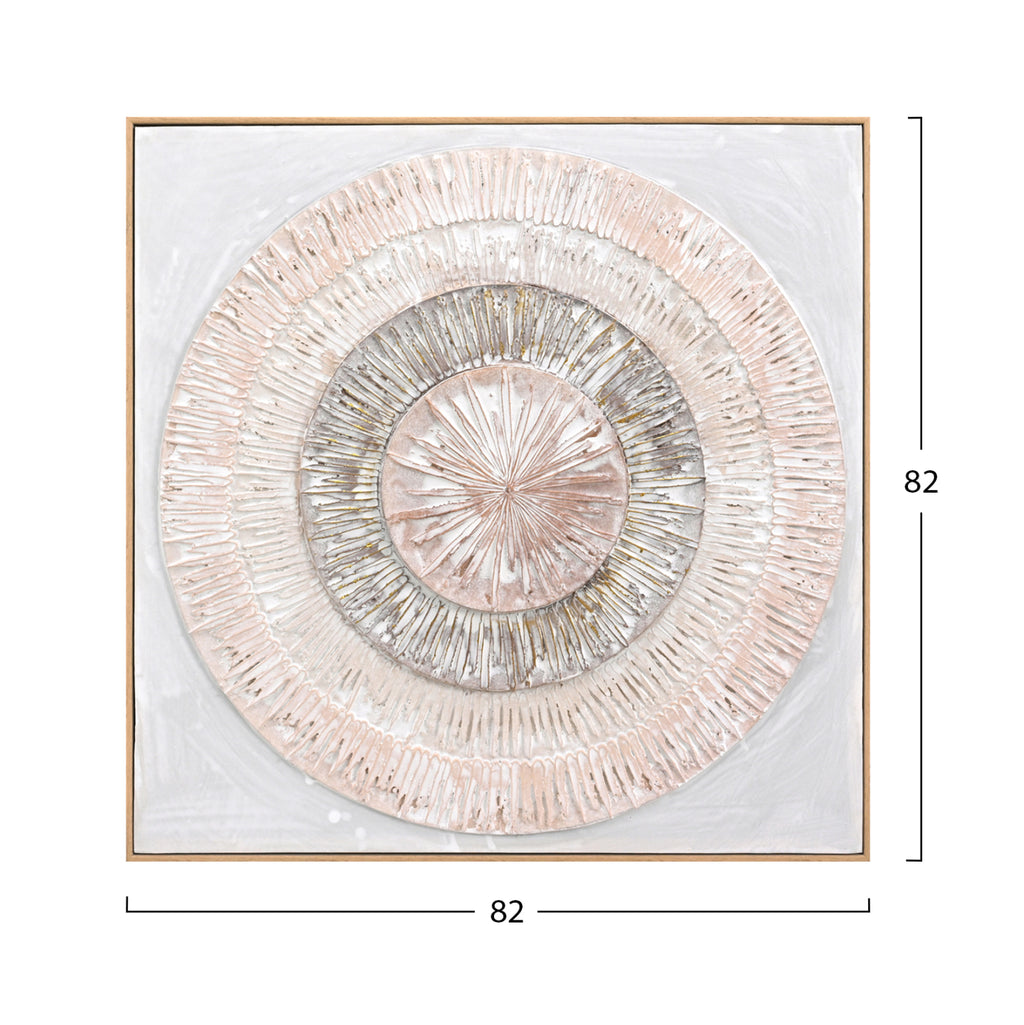 Сред всички декоративни елементи, произведенията на изкуството и особено картините играят важна роля: те не само добавят цвят и естетическа красота, но и придават дълбочина и смисъл на нашето пространство. Една картина трансформира начина, по който възприемаме пространството. Така че, украсете вашето пространство с една от новите картини, добавени към нашата гама! Тази квадратна картина изобразява концентрични кръгове и е 100% ръчно рисувана в светли цветове, като преобладава БЕЖОВОТО и БЯЛОТО. Рамката е изработена от полистирен в БЕЖОВ цвят. Особеността на тази маса е нейната триизмерна (3D) реализация. * 3D изкуство е всеки вид изкуство, което заема 3D пространство и обектът се вижда от множество ъгли. РАЗМЕРИ: 82х4,5(дебелина)х82см. КОНСТРУКТИВНИ МАТЕРИАЛИ: Полистиролът е вид твърда и солидна пластмаса. ** Цветопредаването на продукта може леко да се различава от неговото фотографско представяне на вашия екран.
