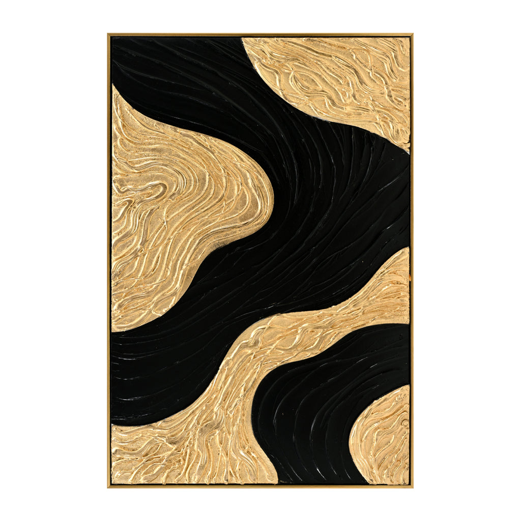 Сред всички декоративни елементи, произведенията на изкуството и особено картините играят важна роля: те не само добавят цвят и естетическа красота, но и придават дълбочина и смисъл на нашето пространство. Една картина трансформира начина, по който възприемаме пространството. Така че, украсете вашето пространство с една от новите картини, добавени към нашата гама! Тази картина е 100% ръчно рисувана в ЗЛАТНО и ЧЕРНО. Рамката е изработена от полистирен в БЕЖОВ цвят. Особеността на тази маса е нейната триизмерна (3D) реализация. * 3D изкуство е всеки вид изкуство, което заема 3D пространство и обектът се вижда от множество ъгли. РАЗМЕРИ: 62х4,5(дебелина)х92см. КОНСТРУКТИВНИ МАТЕРИАЛИ: Полистиролът е вид твърда и солидна пластмаса. ** Цветопредаването на продукта може леко да се различава от неговото фотографско представяне на вашия екран.