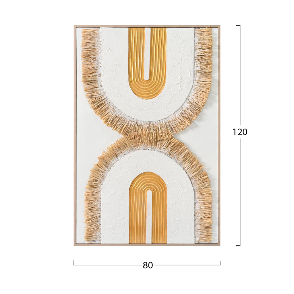 Сред всички декоративни елементи, произведенията на изкуството и особено картините играят важна роля: те не само добавят цвят и естетическа красота, но и придават дълбочина и смисъл на нашето пространство. Една картина трансформира начина, по който възприемаме пространството. Така че, украсете вашето пространство с една от новите картини, добавени към нашата гама! Тази картина е 100% ръчно рисувана върху БЯЛ фон, върху бежова рамка от полистирол. Особеността на тази маса е нейната триизмерна (3D) реализация. * 3D изкуство е всеки вид изкуство, което заема 3D пространство и обектът се вижда от множество ъгли. РАЗМЕРИ: 80х3,5(дебелина)х120см. КОНСТРУКТИВНИ МАТЕРИАЛИ: Полистиролът е вид твърда и солидна пластмаса. ** Цветопредаването на продукта може леко да се различава от неговото фотографско представяне на вашия екран.