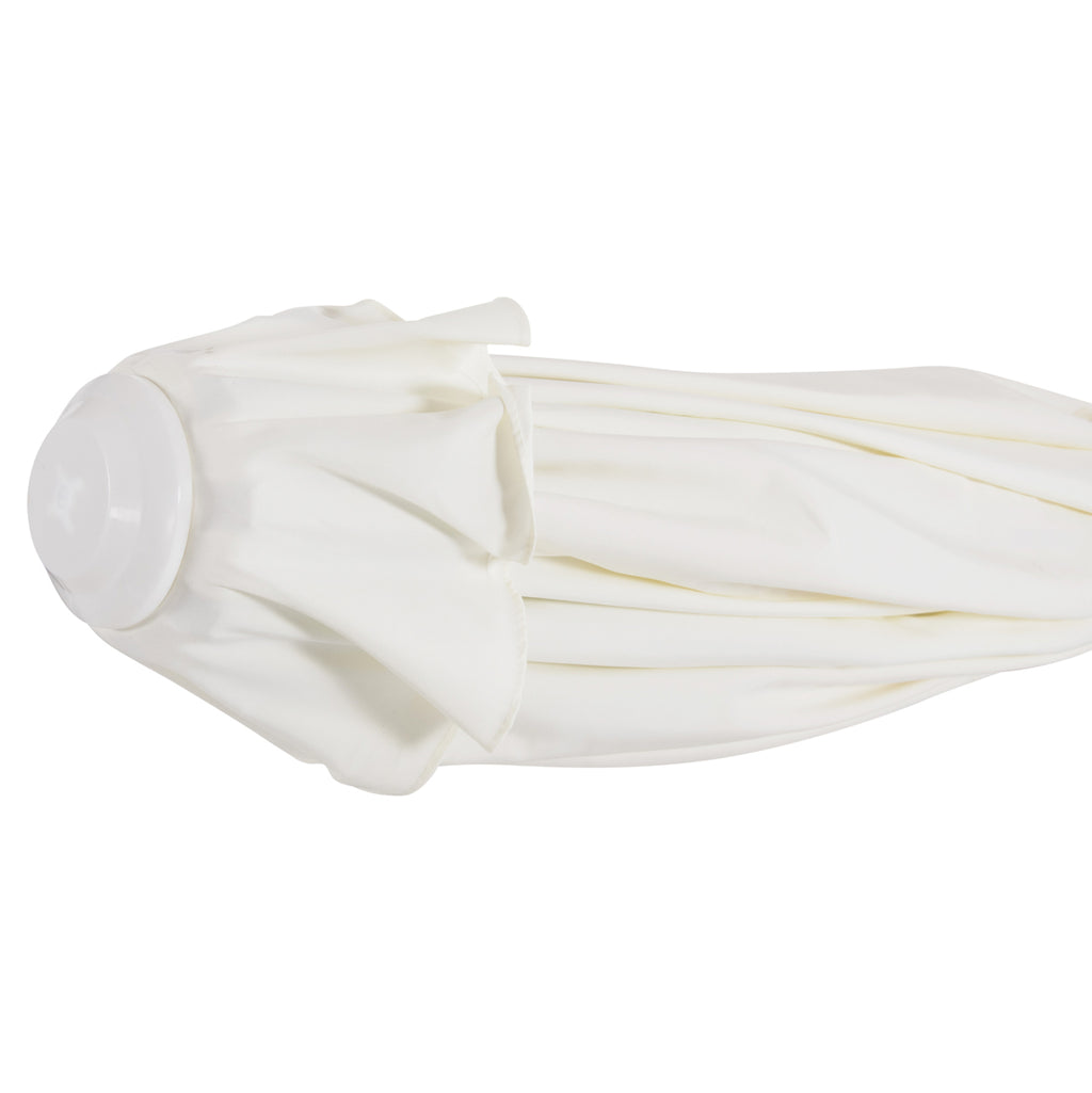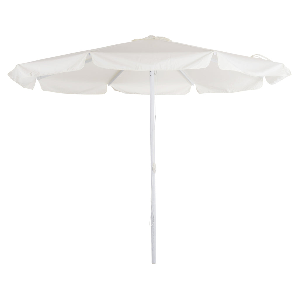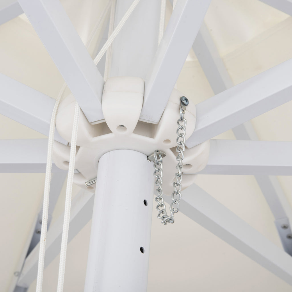Алуминиев кръгъл чадър 3 метра и височина 2,50 см. с въздуховод. С монолитна алуминиева тръба с диаметър Φ 50 mm с 8 алуминиеви спици 18x28 cm. с трипозиционна шпилка за монтаж. Водоотблъскващ полиестерен плат 300 грама + PA покритие с капаци 20 см. Подходящ за плажни заведения и за всякаква професионална употреба. Чадърът е подходящ за използване при ясно време. При нестабилно време чадърът трябва да бъде затворен. Чадърът не подлежи на ремонт.