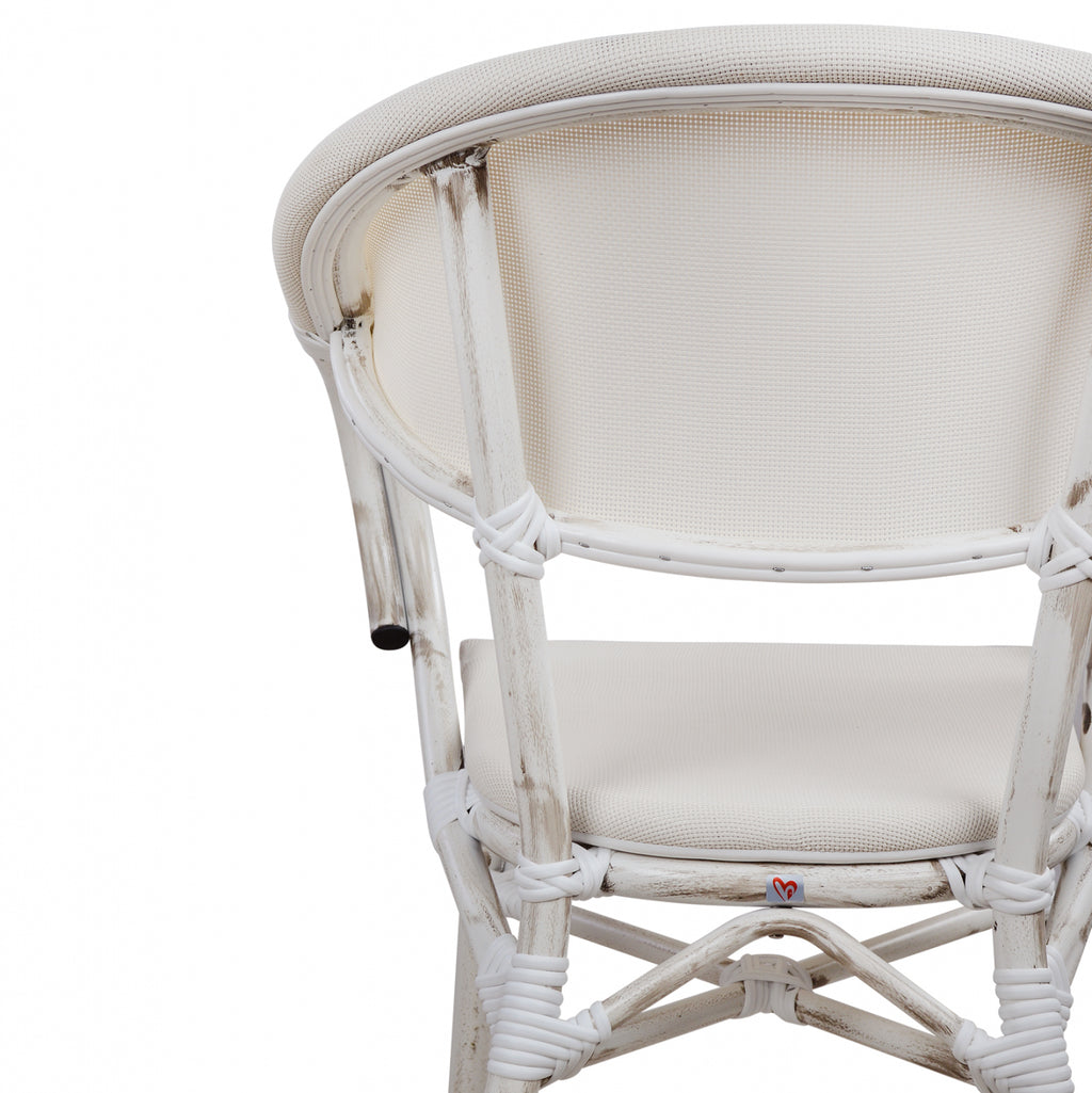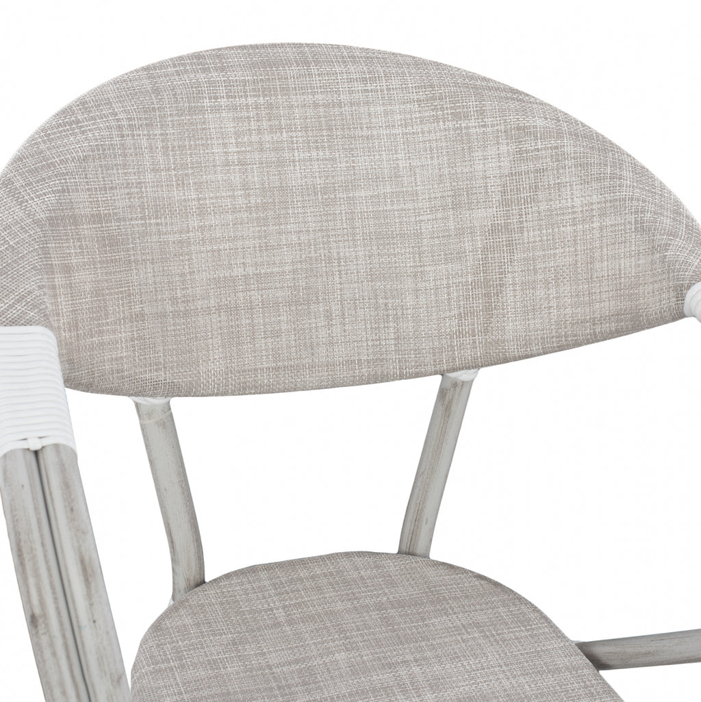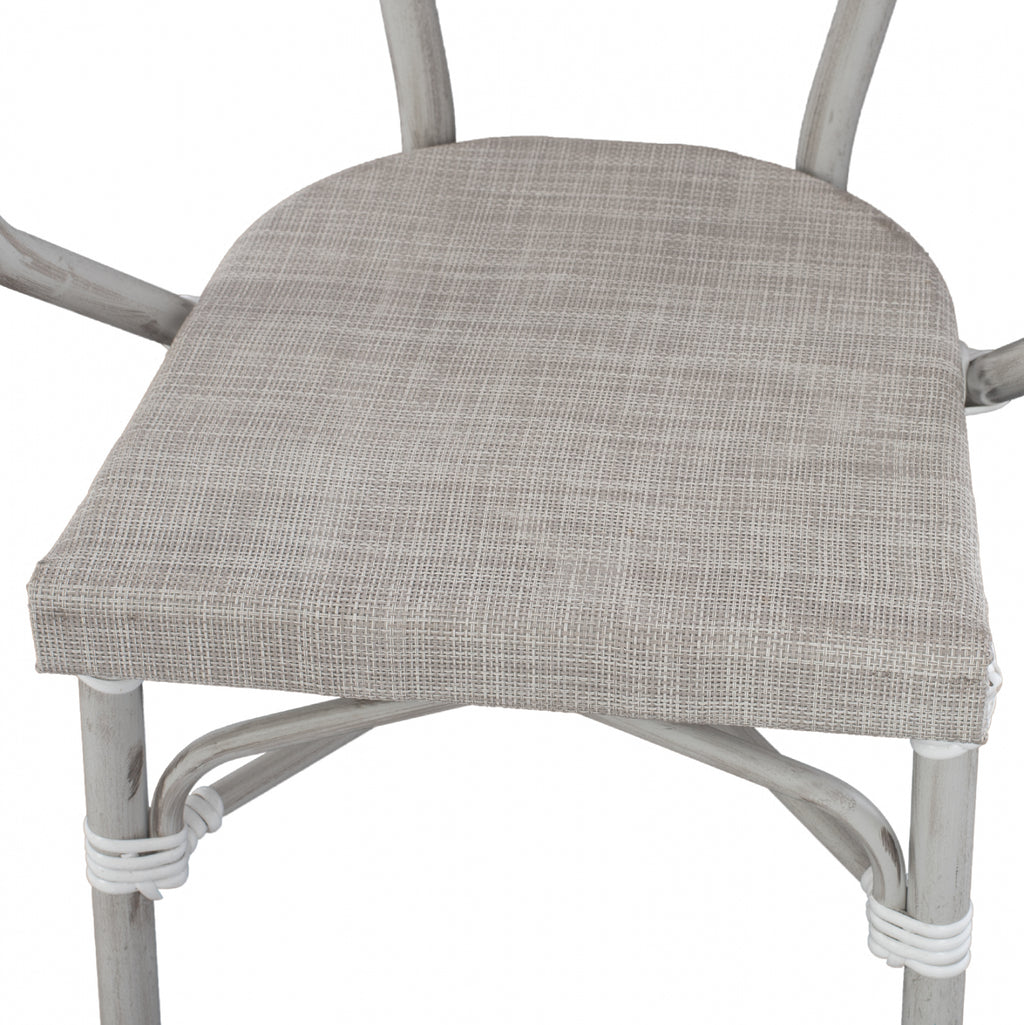 "Bamboo Look" алуминиево кресло за открито с голяма устойчивост на слънце и дъжд. Размери: 57х57х83 см. Водоустойчив текстил на гърба и седалката 4x4 Размери на алуминиевите задни крака: Φ 0.28x1.50 mm. Размери на алуминиеви предни крака: Φ 0.25x1.20 мм. Цвят на рамката: Патина сиво Цвят на плата: Светло сиво