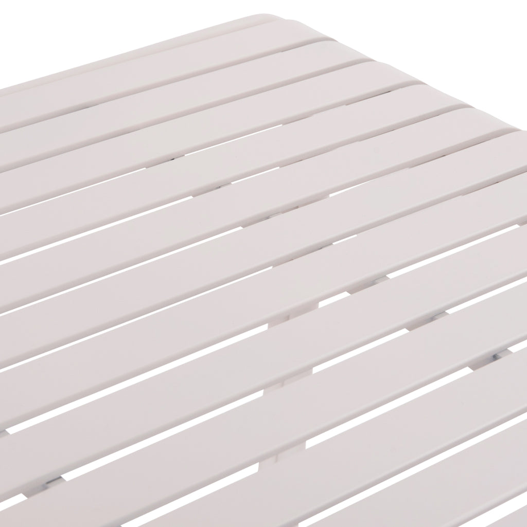Правоъгълната маса RACHEL е изцяло изработена от алуминий в БЯЛ цвят. По отношение на дизайна, тя е семпла с красиви извити ръбове и подсилена двойна рамка. Комбинирайте я с подобни естетически столове, фотьойли или дори пейки и създайте красив образ във вашето външно пространство! РАЗМЕРИ: 150x80x75Y см. Разстояние между краката: 142x76 см. МАТЕРИАЛИ ЗА КОНСТРУКЦИЯ: Цялата маса е от алуминий, боядисан с електростатична боя. Алуминият е „зелен“ и антикорозионен материал, който може да се рециклира за неопределено време, запазвайки характеристиките си без влошаване на качеството. Информация: Електростатичното боядисване е процес на сухо покритие, използван като метално покритие. Електростатичното боядисване е нанасяне на сух прах чрез електростатичен процес, който след това „залепва“ за метала чрез топлина. ПОДДРЪЖКА: В допълнение към редовното почистване от прах, можете да го избършете с влажна кърпа. *Продуктът се доставя несглобен. ** Цветопредаването на продукта може леко да се различава от фотографското му представяне на вашия екран.