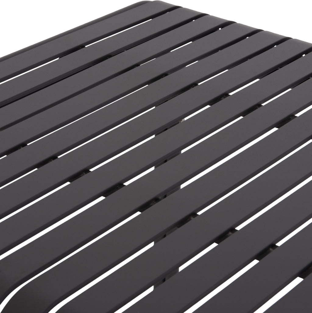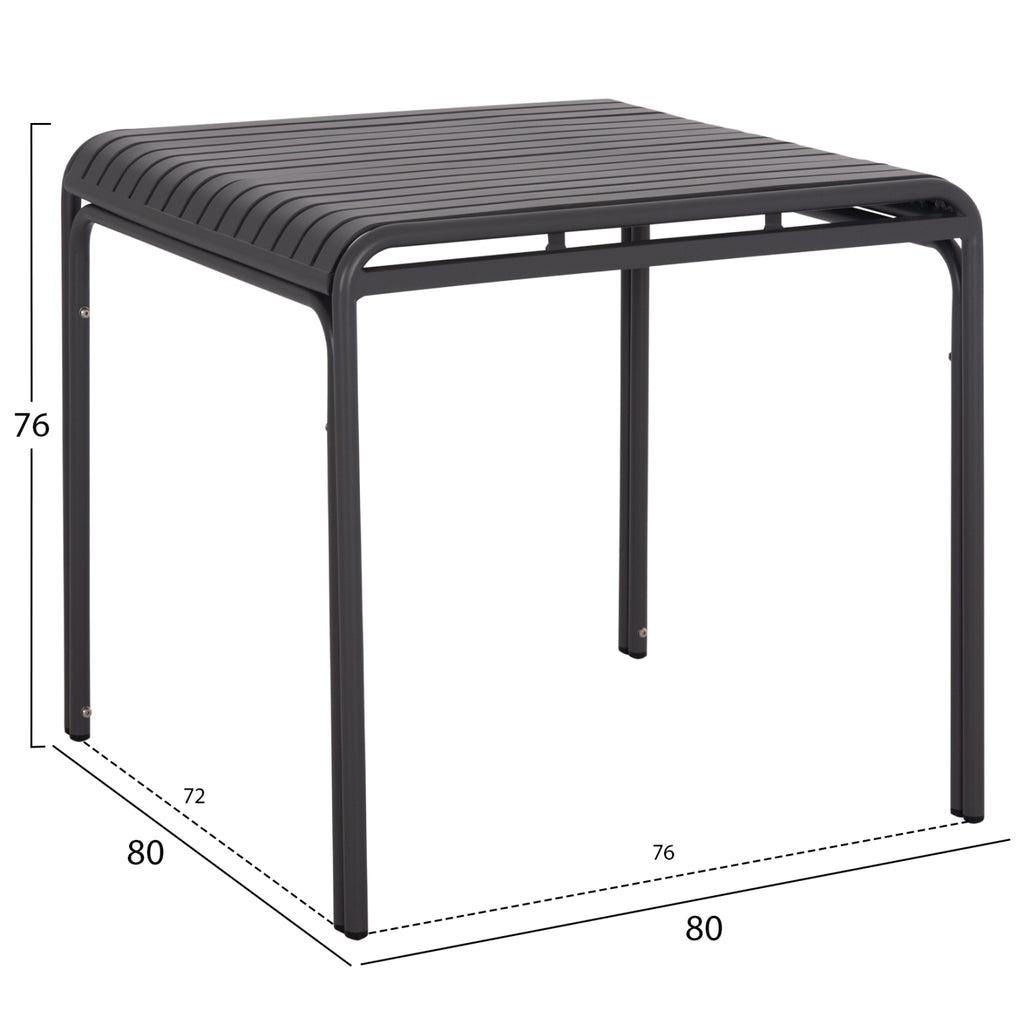 Квадратната маса RACHEL е изработена изцяло от алуминий в СИВ цвят. По отношение на дизайна, тя е семпла с красиви извити ръбове и подсилена двойна рамка. Комбинирайте я с подобни естетически столове, фотьойли или дори пейки и създайте красив образ във вашето външно пространство!