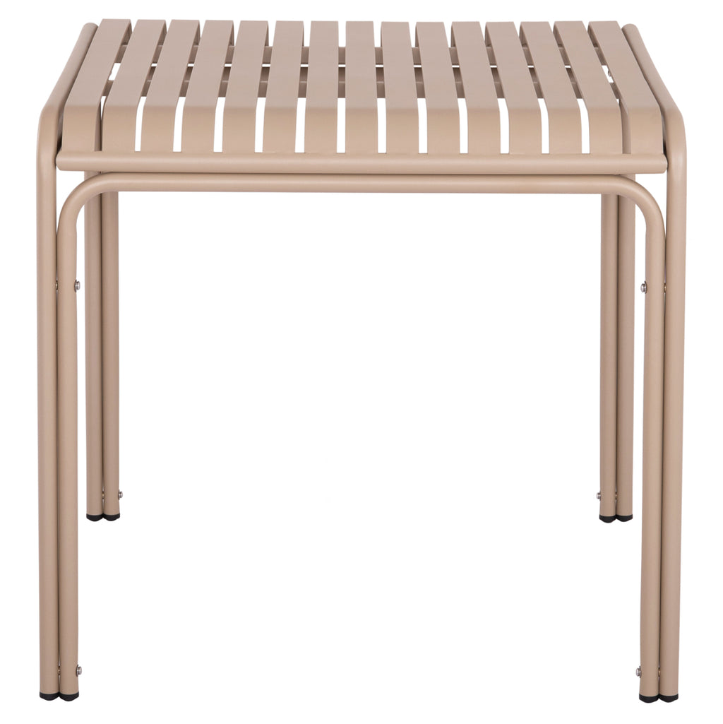 Квадратната маса RACHEL е изработена изцяло от алуминий в цвят шампанско. По отношение на дизайна, тя е семпла с красиви извити ръбове и подсилена двойна рамка. Комбинирайте я с подобни естетически столове, фотьойли или дори пейки и създайте красив образ във вашето външно пространство!