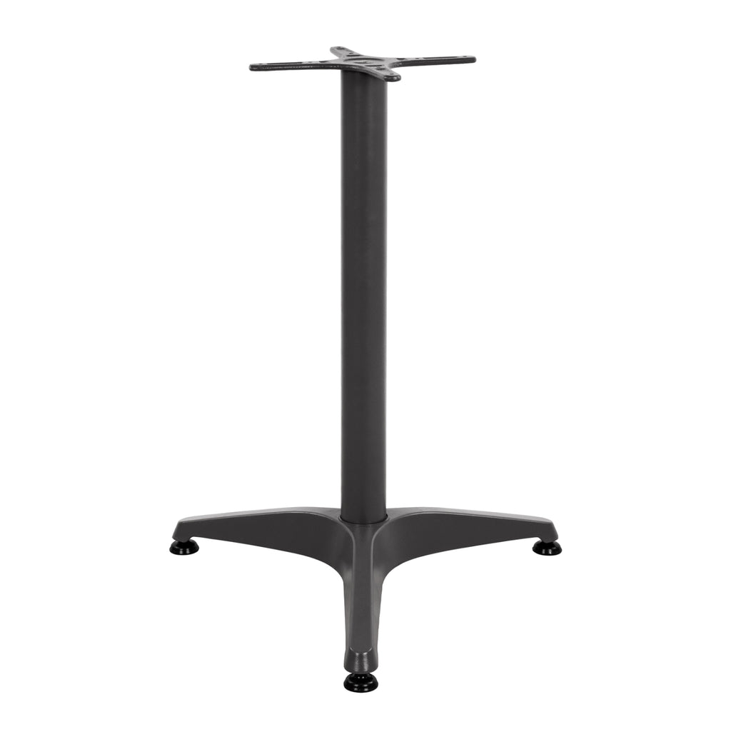База за маса от алуминий в сив нюанс с регулатори. Тази основа има компактна кръстачка 29x29 см и е подходяща за по-малки маси.