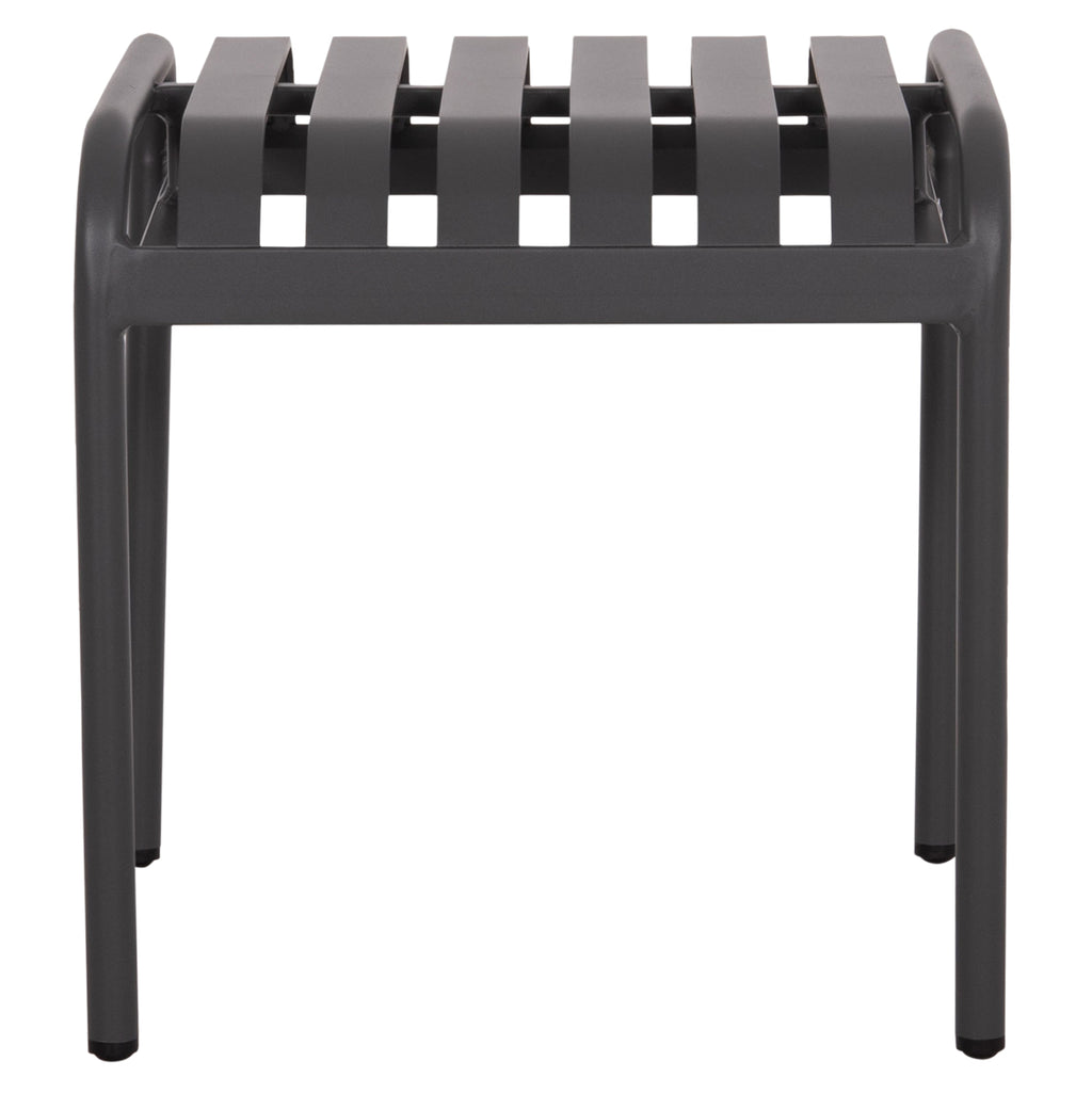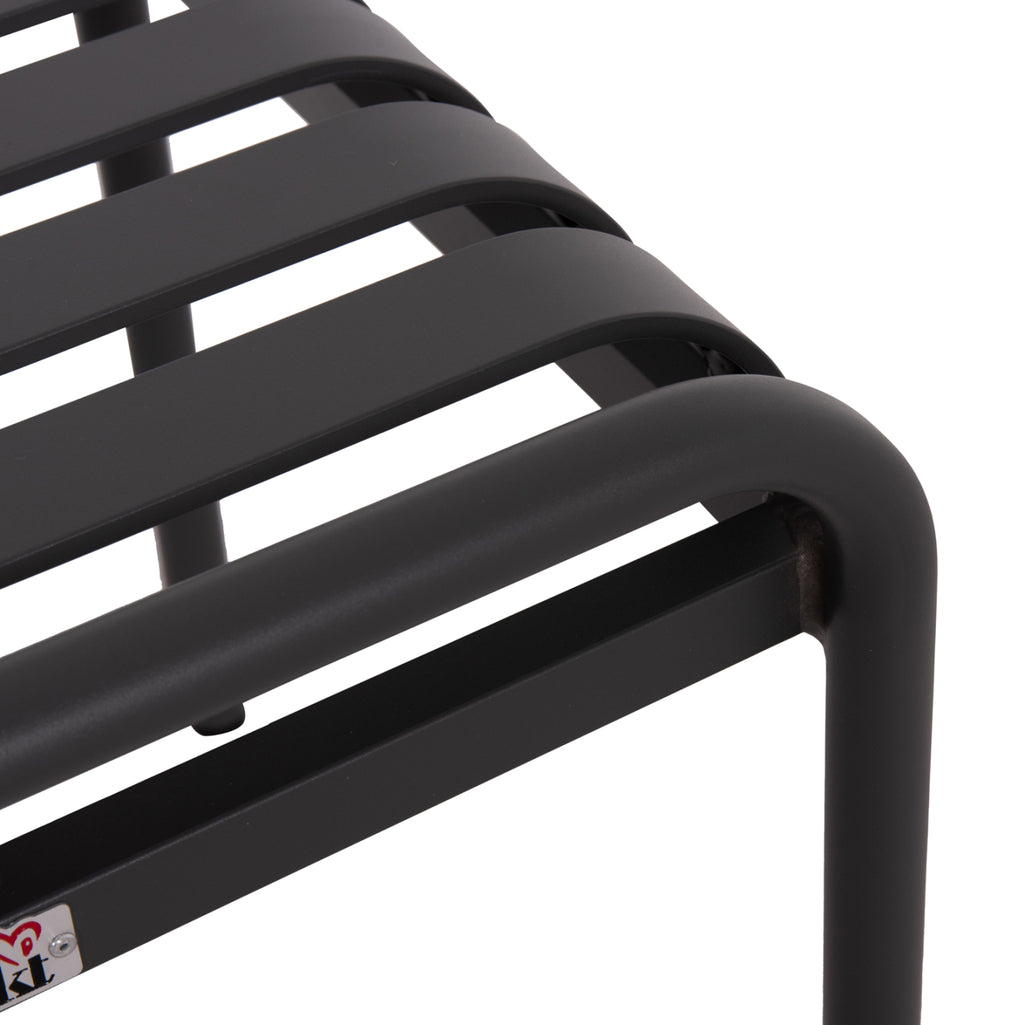 Късият външен стол RACHEL е изцяло изработен от алуминий в сив цвят. По отношение на дизайна, той е семпъл с красиви извивки и може да се използва по много начини, предлагайки практична и издръжлива употреба.