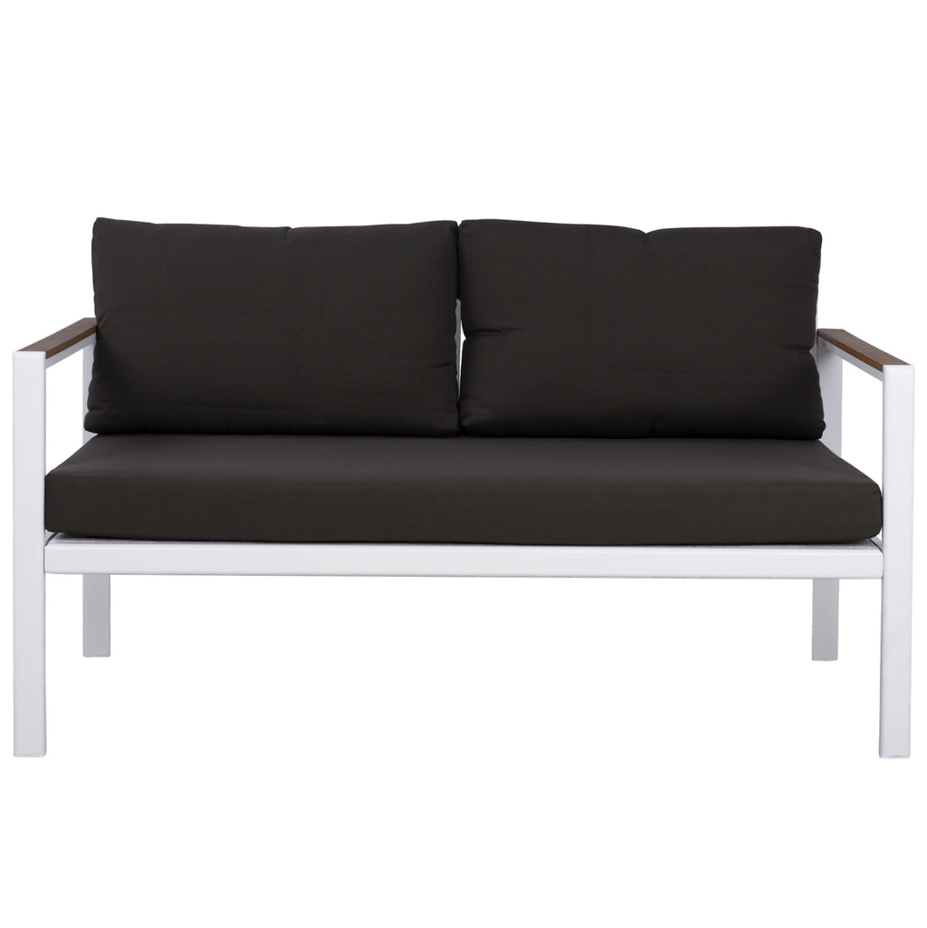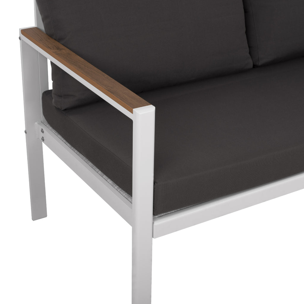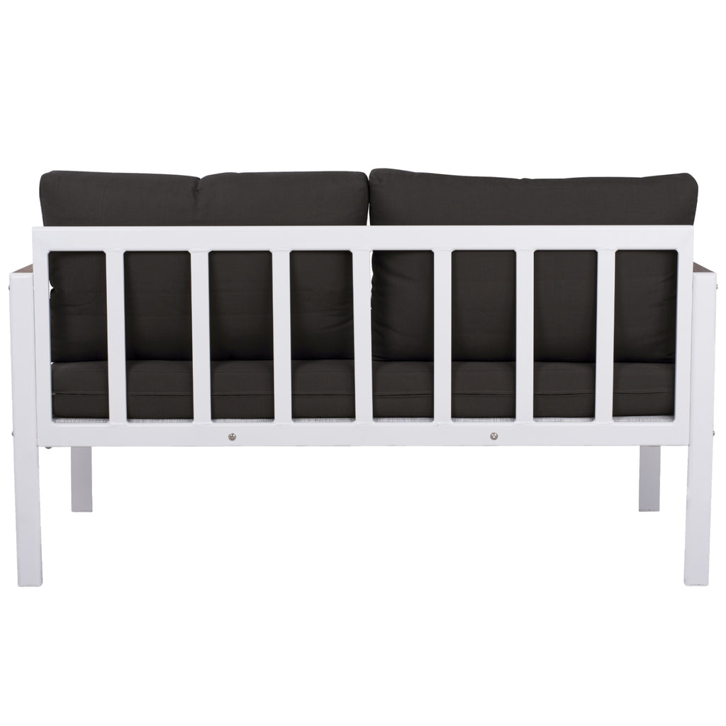 SAFIYA е красив 2-местен външен диван в комбинация БЯЛО-ВЪГЛЕН. Комбинацията от алуминиева рамка в БЯЛ цвят с големи възглавници за гръб и седалка с полиестерен плат в цвят КАРБОН е уникална и може незабавно да промени имиджа на всяко външно пространство. Характерна особеност на този диван е, че краката са високи, което води до висока височина на седалката, докато "докосването" от полидървесина на ръцете придава оттенък на лукс, който не остава незабелязан. РАЗМЕРИ: 144x70x85H см. Височина на седалката: 46 см. Височина на ръцете: 66 см. Размери на седалката: 133x52 см. МАТЕРИАЛИ НА КОНСТРУКЦИЯТА: Рамката е изработена от алуминий, боядисан с електростатична боя. Алуминият е метал с отлични механични свойства и много устойчив на различни форми на корозия по природа и изисква минимални разходи за поддръжка. Може да се рециклира неограничено време, запазвайки характеристиките си без влошаване на качеството. Информация: Електростатичното боядисване е процес на сухо покритие, използван като метално покритие. Електростатичното боядисване е нанасяне на сух прах чрез електростатичен процес, който след това се „свързва“ към метала чрез топлина. ПОДДРЪЖКА: Идеалното за поддръжка на алуминий е използването на много мека кърпа или гъба, обилно количество вода и мек почистващ продукт, като например препарат за миене на съдове. Алуминиевите мебели нямат специални изисквания за поддръжка, тъй като не корозират. *Продуктът се доставя разглобен във фабрична опаковка. **Точното цветопредаване на продукта може леко да се различава от действителния продукт поради различни настройки на монитора.