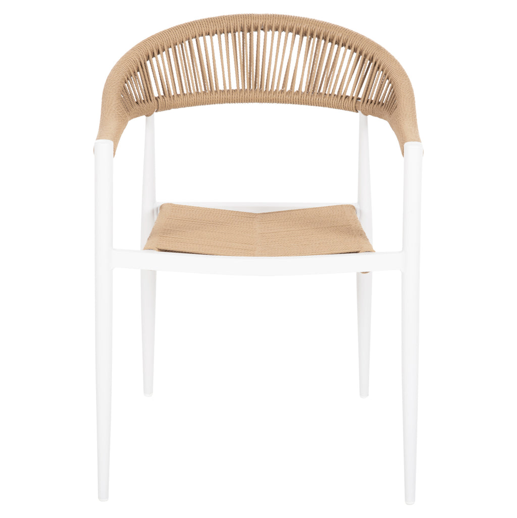 Креслото GRET е красиво! Модерни, удобни и стабилни! Уникална е двуцветната комбинация от БЯЛА рамка с БЕЖОВА РАТАНОВА-ПЛЕТЕНА тапицерия на седалка, облегалка и подлакътници. Гърбът е закръглен и прегръща тялото, докато седалката е с плетена тъкан вместо възглавница. Този фотьойл ще облагороди естетически пространството, където го поставите и ще привлече вниманието благодарение на материалите за изработка. Освен това фактът, че може да се подрежда една върху друга, го прави особено практичен, тъй като можете да го съхранявате на възможно най-малко място.