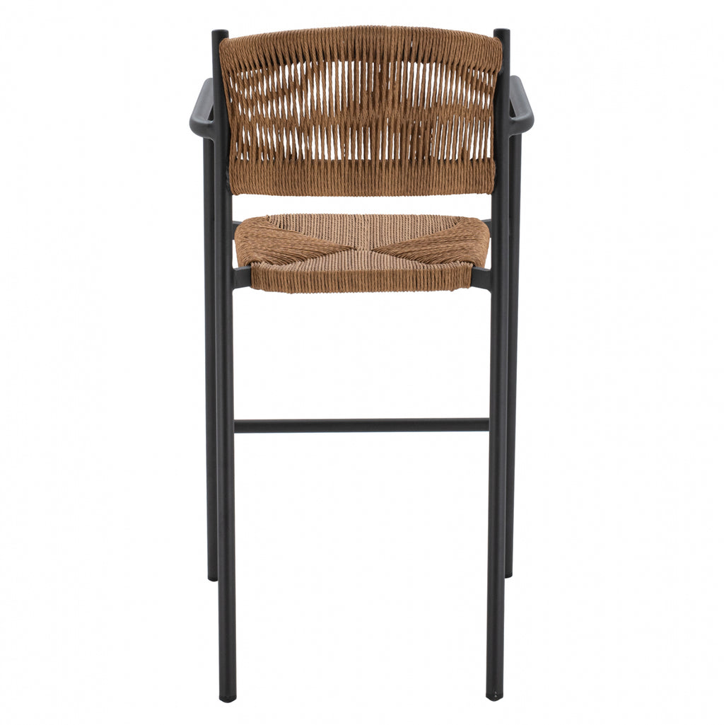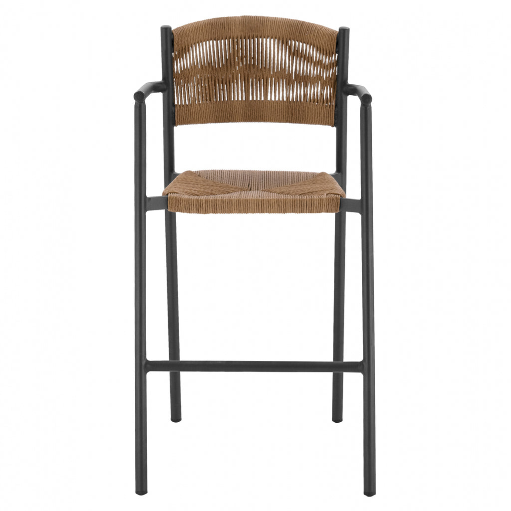 Модерен бар стол, изработен от алуминиева конструкция в сив нюанс, облечен с въже на гърба и седалка в бежов нюанс. Табуретка с отлично качество и конструкция с ръчно изработена плетка на седалката. Идеален за кетъринг зони, но и за вашия дом, той ще придаде модерен и специален ефект на вашето пространство. Размери: 55.5x58x107 см. Размери на седалката: 43,5х43 см. Височина на седалката: 69,5 см. Размери на гърба: 46,5х39 см. Размери на ръката: 36х25 см. Височина на ръцете: 93,5 см. Разстояние между краката: 56х58 см. Височина на крака: 65,5 см. Технически характеристики Алуминиева рамка Тръба за крака Φ 28x1.5 mm Седална тръба 30x18x1.2 mm Седалка и облегалка с ръчно изработена оплетка от PE въже Φ5 mm