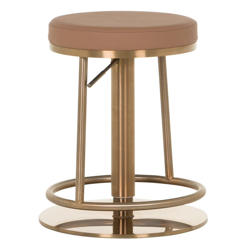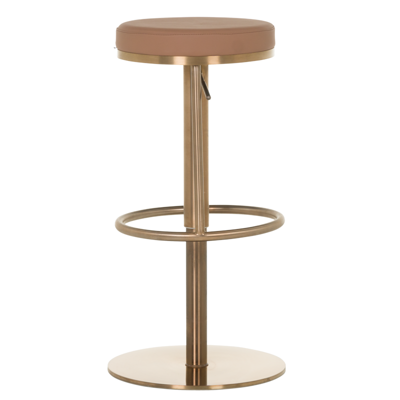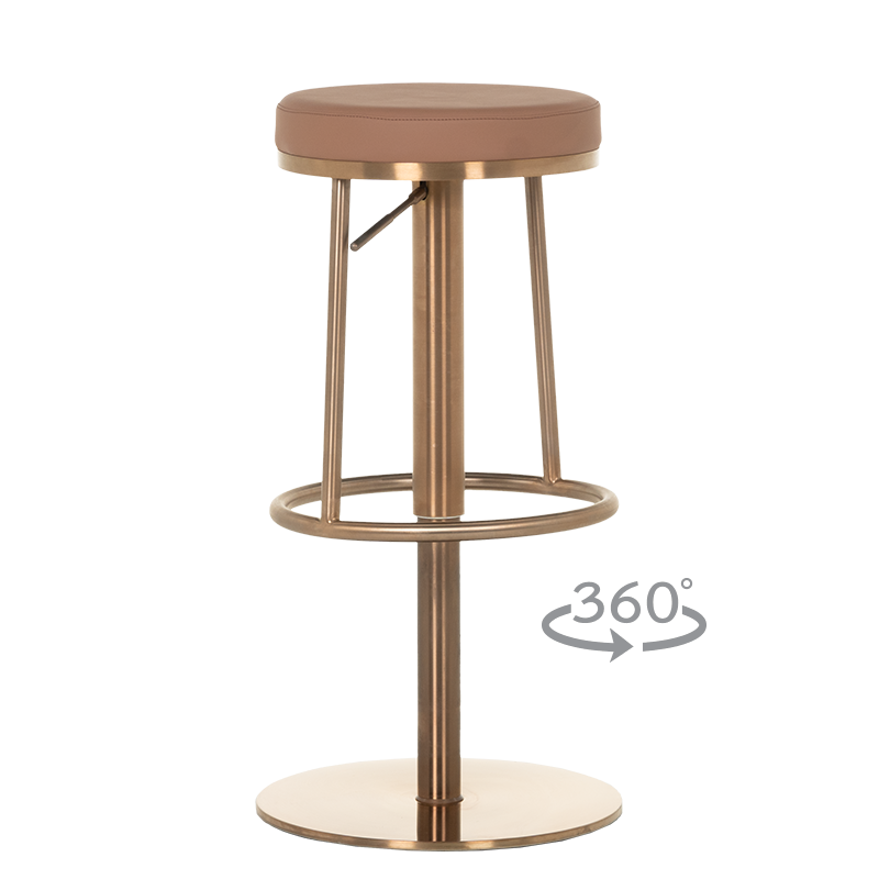 Бар столът BEZU е символ на лукс и изтънченост, съчетавайки модерен дизайн с максимален комфорт. Тапициран във висококачествена еко кожа, той предлага изключителна мекота и стил, придавайки на интериора усещане за елегантност и грижа към детайла. Основата е изработена от иноксова стомана с луксозно полирано покритие със златист финиш, което придава на стола не само издръжливост, но и бляскаво визуално присъствие. Освен впечатляващия си външен вид, BEZU предлага практичност, като в най-ниската си позиция той може да се използва като удобна табуретка. С въртене на 360 градуса и регулируема височина, този стол е перфектният избор за всеки изискан интериор, където стилът и функционалността се преплитат. Пълна информация за размерите и характеристиките на модела ще намерите в таблицата в таб/поле "Техническа информация".