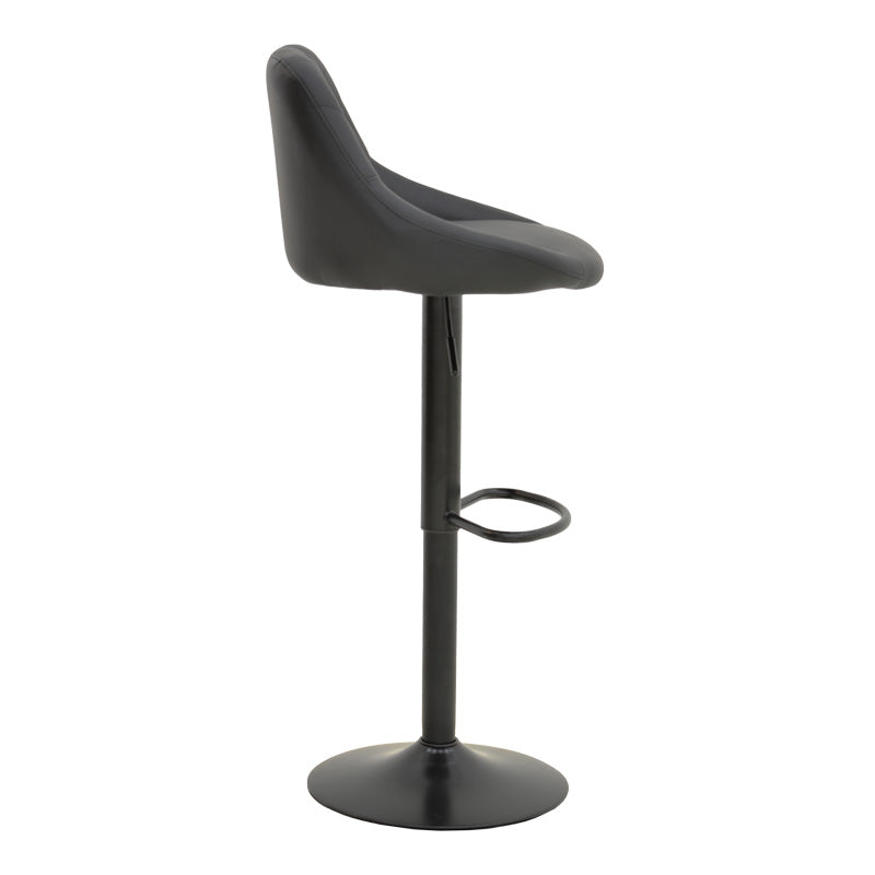 Абстрактният дизайн, комбиниран с ергономична конструкция, превръща тази табуретка в уютна прегръдка, която следва контурите на тялото, позволявайки ви да се насладите удобно на вашето питие, храна и компанията на приятели. Идеален за освежаване на барове, кухни и изложбени пространства, добавяйки нова атмосфера към района. Технически характеристики: Разполага с висок газлифт механизъм за регулиране на височината. Седалка и облегалка, тапицирани с висококачествена черна PU кожа, изключително устойчива на износване и лесна за почистване. Предлага се в черен цвят. Сигурна стоманена основа за повишена издръжливост, с интегрирана опора за крака. Облегалка, проектирана да поддържа и следва гръбнака. Лесно завъртане на 360 градуса. Капацитет на тегло: 150 кг. Размери на продукта: Дължина: 47 см. Ширина: 49 см. Височина: 92-112 см. Височина на седалката: 57-74 см. Дълбочина на седалката: 47 см. Височина на облегалката: 26 см. Капацитет на тегло: 150 кг. Забележки: Продуктът се доставя несглобен във фабрична опаковка, с включено подробно ръководство за монтаж. Цветовият нюанс на продукта може леко да се различава от фотографското представяне на вашия екран.