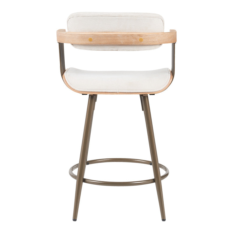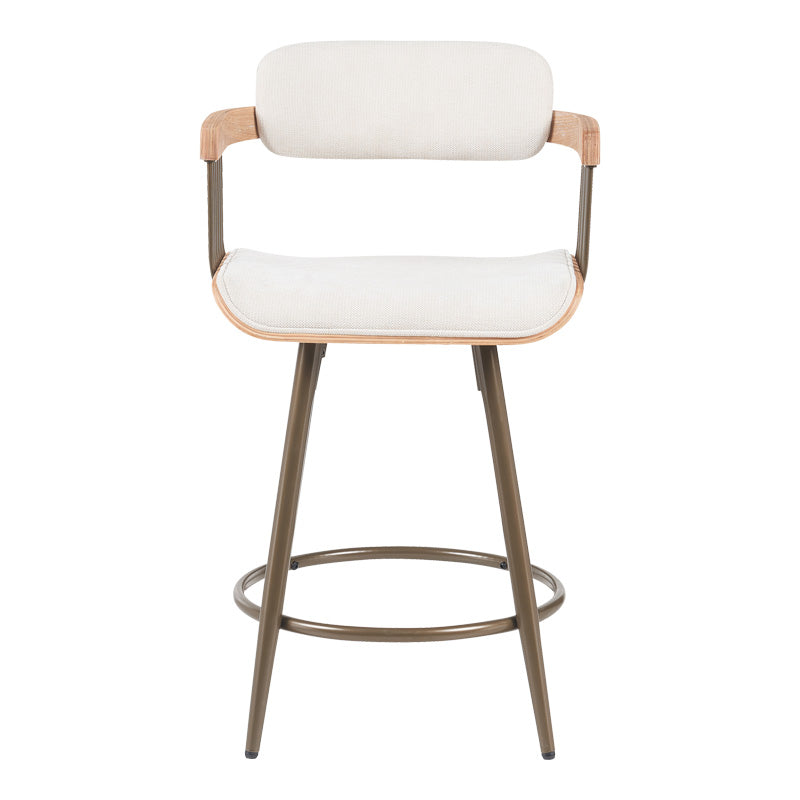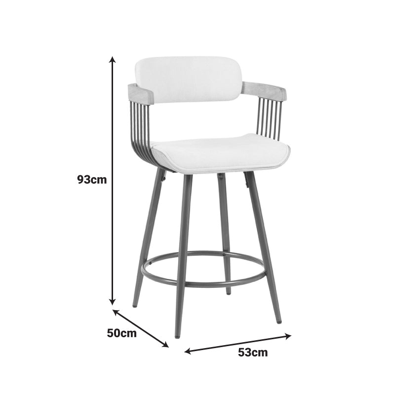 Бар столът Cameo безпроблемно съчетава модерната естетика с комфорта. Разполага с извита седалка и облегалка, тапицирани с мека материя, която предлага изключителен комфорт. Естествените дървени акценти върху подлакътниците добавят топла, органична нотка, докато металните крака допълват изтънчения вид, осигурявайки стабилност заедно с усещане за лекота. Технически характеристики: Дървени детайли от варован шперплат, предлагащ висока издръжливост и устойчивост на износване. Модерният извит дизайн осигурява повишен комфорт. Поддържан от метални крака с бронзово покритие. Тапициран с висококачествен плат, устойчив на износване и триене. Предлага се в бежов цвят. Размери на продукта: Дължина: 53 см Ширина: 50 см Височина: 93 см Забележки: Продуктът се доставя във фабрична опаковка с подробно ръководство за монтаж. Цветовият тон на продукта може леко да се различава от фотографското представяне на вашия екран.