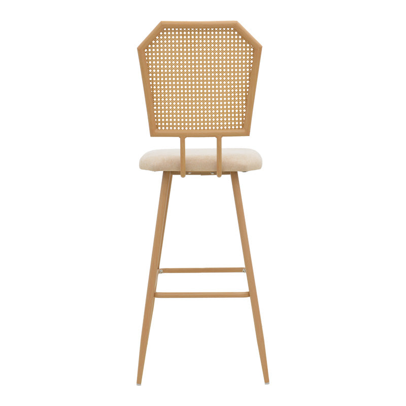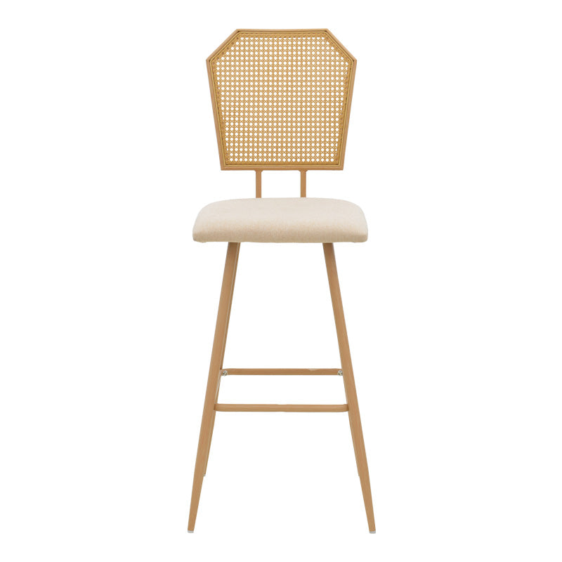 Търсите бар стол, който да впечатлява както с естетика, така и с качество на изработка? Бар стол Camilla I е най-добрият избор на най-добрите пазарни цени. Технически характеристики: Рамка: Изработена от изключително издръжлива метална рамка (Φ25x1mm) в естествен цвят, гарантиращ дълготрайна здравина. Седалка: Тапицирана с висококачествена дамаска в бежов цвят. Облегалка: Покрита с високоустойчив PE ратан в естествен цвят, предлагащ едновременно стил и здравина. Размери на продукта: Дължина: 47,5 см. Ширина: 58 см. Височина: 117 см. Височина на седалка: 76 см. Забележки: Продуктът се доставя несглобен във фабричната си опаковка. Цветовият нюанс на продукта може леко да се различава от вида му на вашия екран.