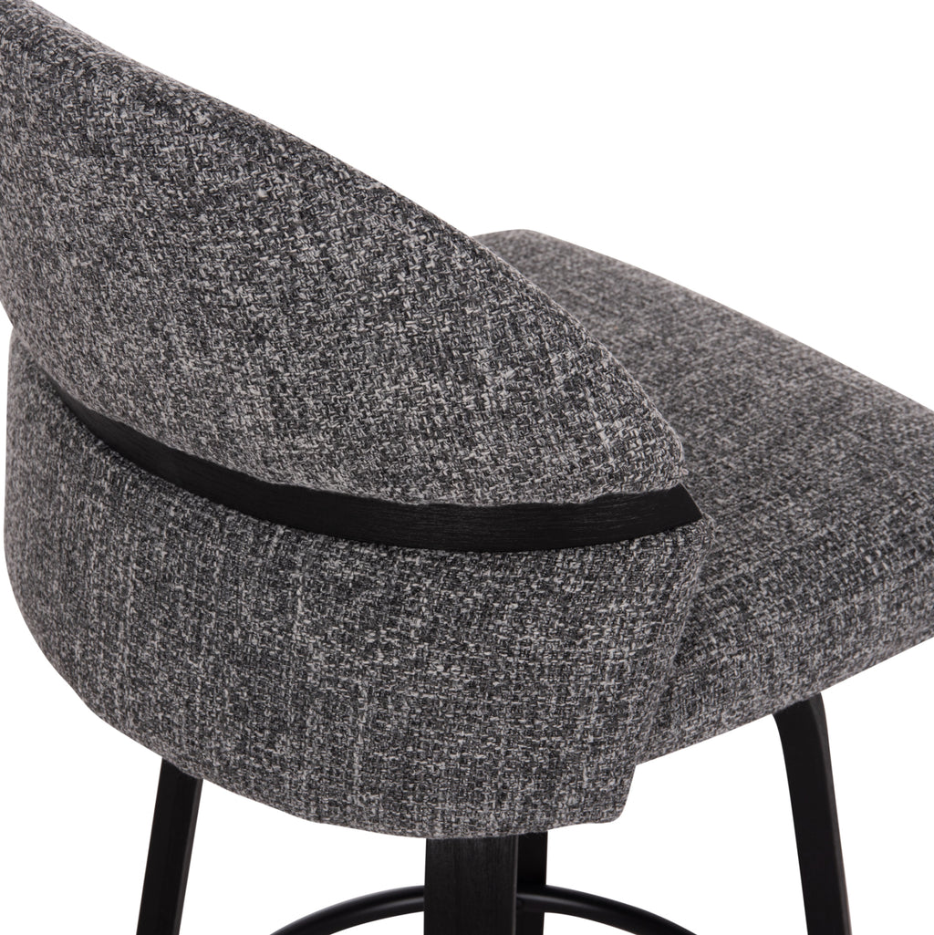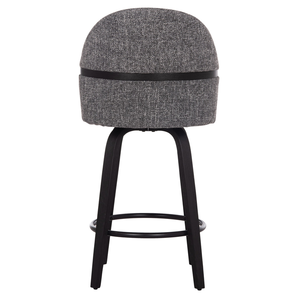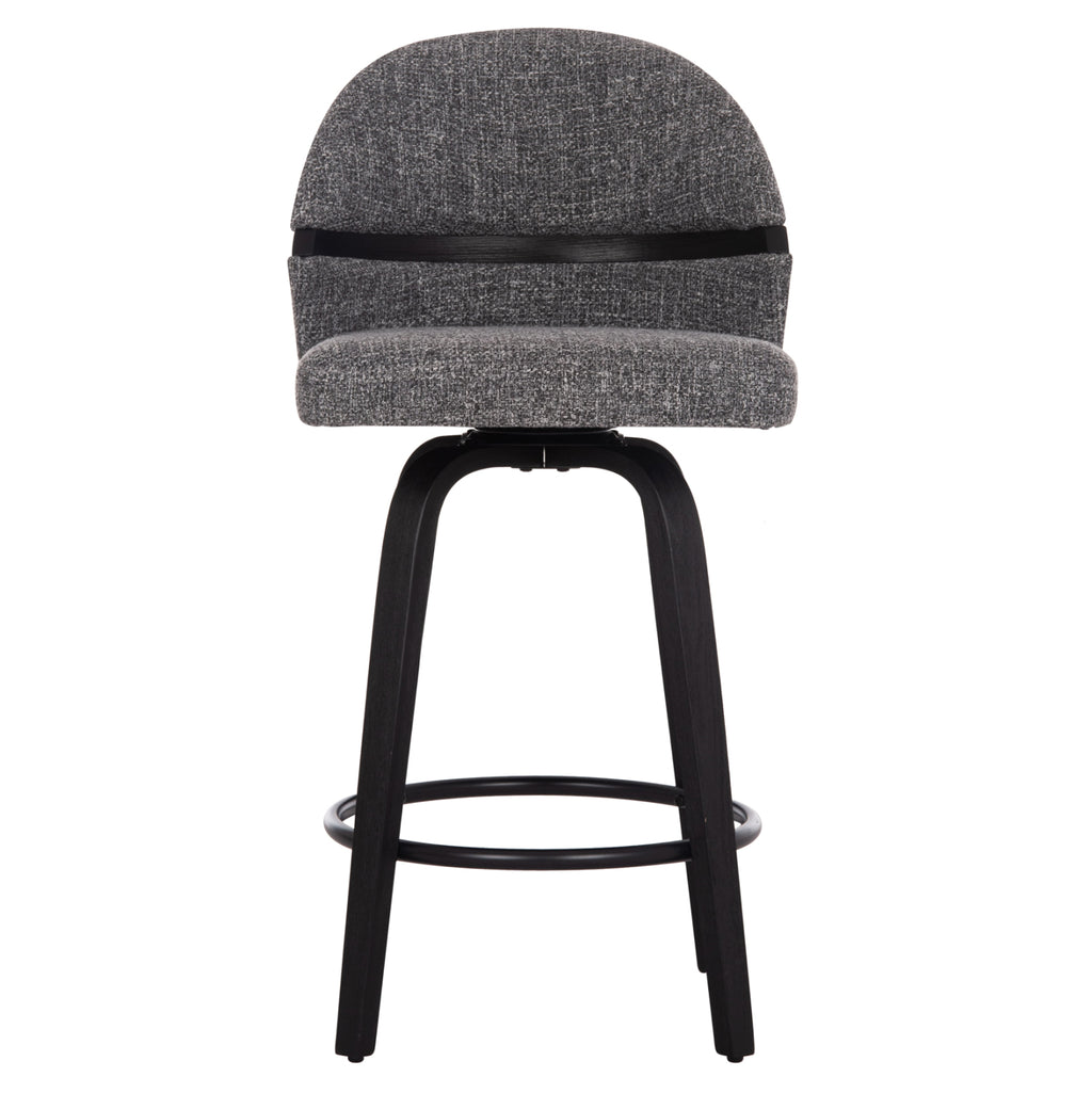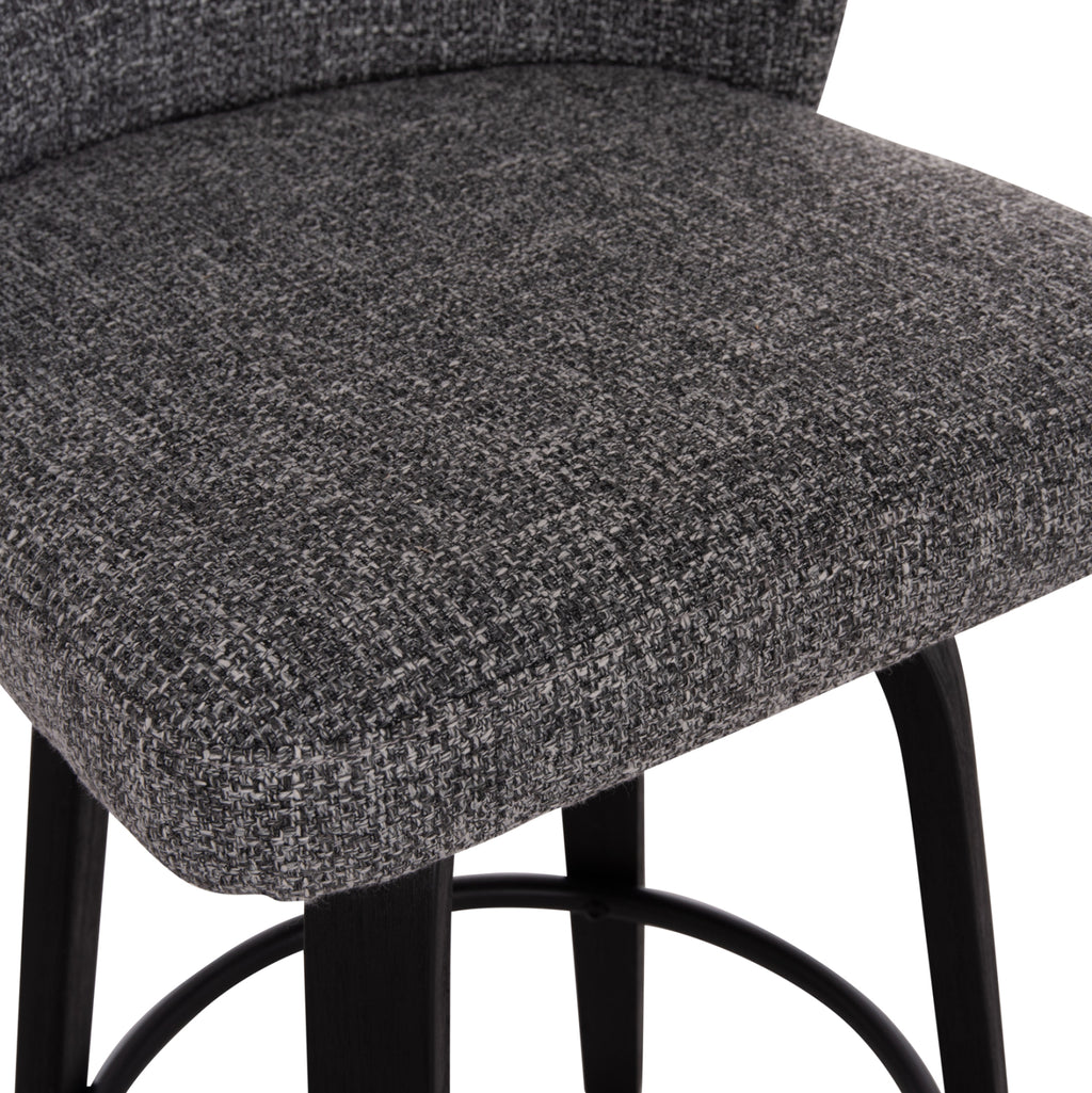 Въртящият се бар стол DEKKER със средна височина е ново предложение за вашето професионално пространство. Рамката е изработена от ЧЕРЕН шперплат, докато седалката и облегалката са тапицирани с прекрасна релефна материя в СИВО. В долната част на краката има регулатори за регулиране на стабилността на стола, а също така разполага и с поставка за крака.