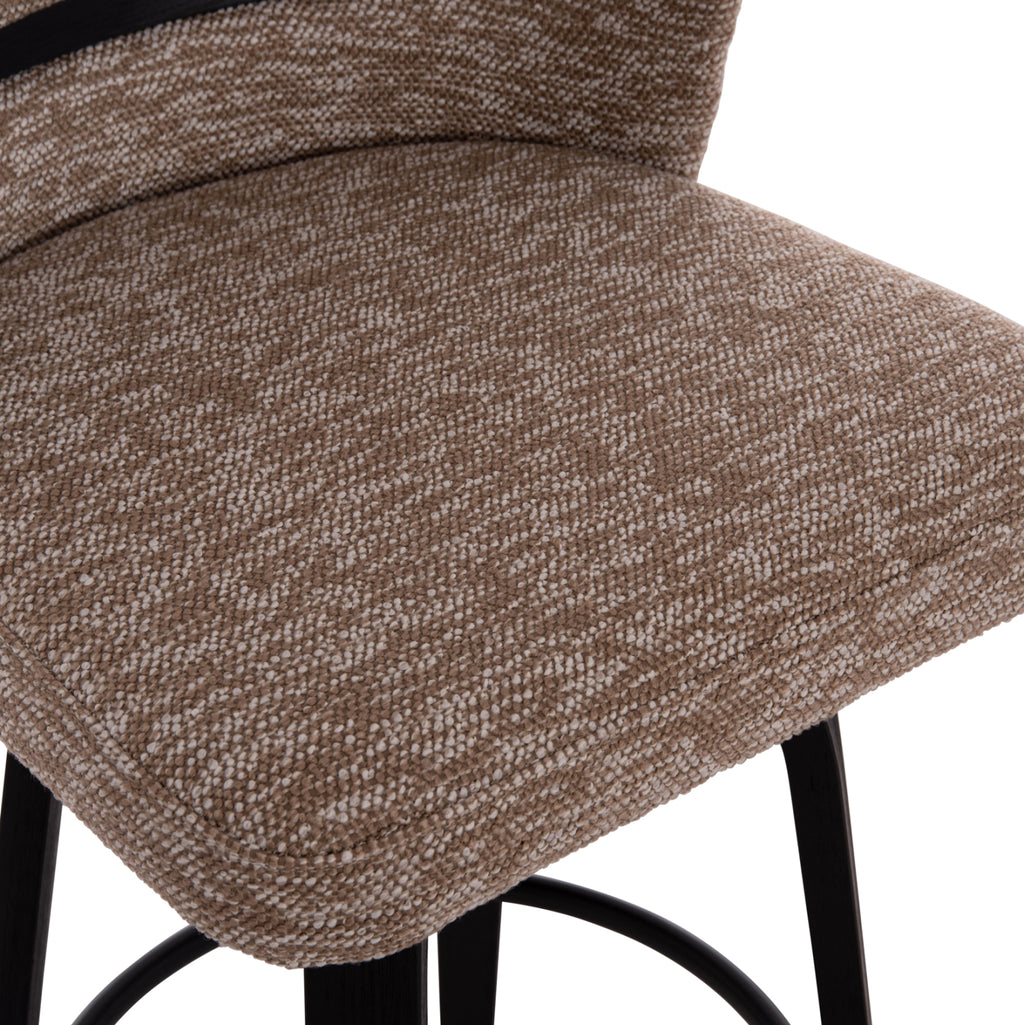 Въртящият се бар стол DEKKER със средна височина е ново предложение за вашето професионално пространство. Рамката е изработена от ЧЕРЕН шперплат, докато седалката и облегалката са тапицирани с прекрасна релефна материя в КАФЯВ цвят. В долната част на краката има регулатори за регулиране на стабилността на стола, а също така разполага и с поставка за крака. РАЗМЕРИ: 48x54x96В см. Размери на седалката: 48x43 см. Размери на облегалката: 48x34 см. Височина на седалката: 65 см. Височина на поставката за крака: 45 см. Разстояние между краката: 32x32 см. МАТЕРИАЛИ ЗА КОНСТРУКЦИЯ: Рамката е изработена от шперплат (морски шперплат). Морският шперплат е изработен от тънки листове дървесина, които са залепени заедно, в противоположни посоки за по-голяма здравина. Отличава се с отличната си здравина и устойчивост на напукване, натиск и деформация. ПОДДРЪЖКА: Материята се почиства лесно с влажна кърпа. Шперплатът не се нуждае от много влага, само бързо избърсване с кърпа с малко вода. *Продуктът се доставя несглобен във фабрична опаковка. ** Цветопредаването на продукта може леко да се различава от фотографското му представяне на вашия екран.