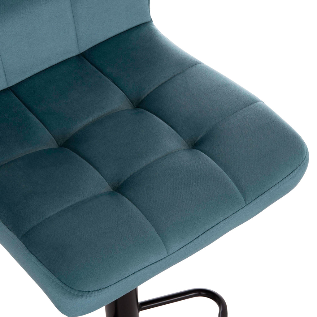 Бар-кухненски стол с амортисьорна конструкция в черен нюанс, със седалка и облегалка от тюркоазено кадифе. Размери: 44х52см. Размери на седалката: 44х37 см. Размери на гърба: 44 х 30 см. Максимална височина на седалката: 81 см. Минимална височина на седалката: 61 см. Максимална височина на гърба: 109 см. Минимална височина на гърба: 89 см. Забележки 1) Табуретката се предлага в опаковка ВНИМАНИЕ: Продуктът се предлага в разглобена опаковка от два броя и се продава по 2 броя.