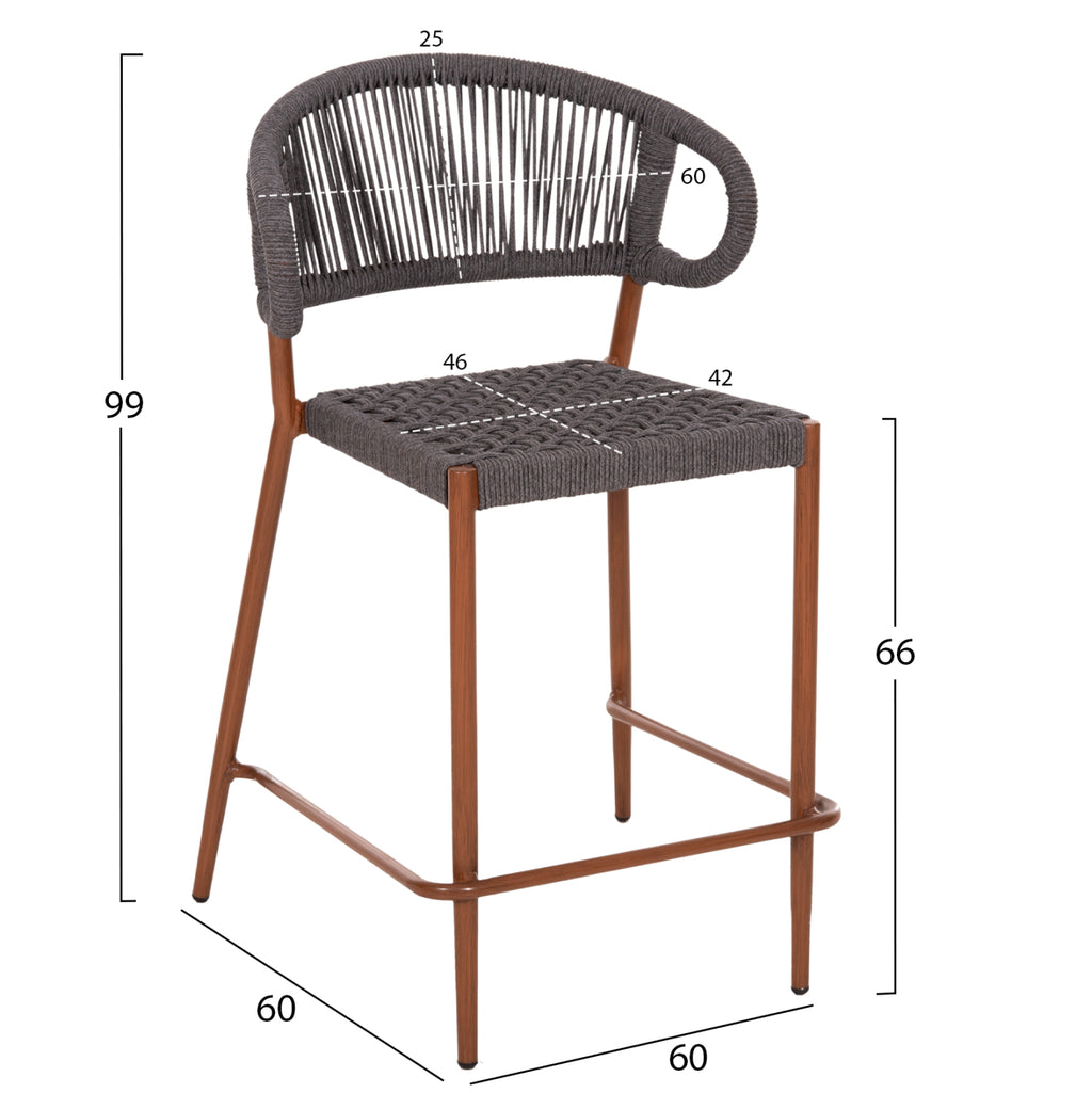 Средновисокият алуминиев бар стол EULO е ново допълнение към нашата гама. Рамката е в цвят ОРЕХ (дърво), като има средна височина и широка извита облегалка и широка седалка, изработени от СИВ синтетичен ратан ("увит", който прилича на въже). Тази табуретка е идеална за множество приложения на открито. РАЗМЕРИ: 60x60x99H см. Размери на седалката: 42х46 см. Размери на гърба: 60х25см. Височина на ръцете: 93 см. Височина на седалката: 66 см. Височина на крака: 61 см. Разстояние между краката: 43,5х58 см. Разстояние задни крака: 54-58 см. cm. Спецификации на алуминия: Φ28 + Φ32 x 1.5mm МАТЕРИАЛИ НА КОНСТРУКЦИЯТА: Рамката е изработена от алуминий, боядисан с електростатична боя. Алуминият е „зелен“ материал, който може да се рециклира неограничено време, като запазва характеристиките си без влошаване на качеството. По своята същност алуминият е устойчив на корозия. Електростатичното боядисване е процес на сухо покритие, използван като метално покритие. Електростатичното боядисване е нанасяне на сух прах чрез електростатичен процес, който след това се „свързва“ към метала чрез топлина. Синтетичният ратан е синтетичен материал, изработен от PVC, т.е. висококачествени изкуствени влакна. Това дава отлична здравина и издръжливост при екстремни горещини или студени условия. ПОДДРЪЖКА: Благодарение на издръжливостта на алуминий и синтетичен ратан, поддръжката е лесна. Освен редовното почистване от прах, можете да го избършете с влажна кърпа. Не използвайте химически почистващи препарати. ПРЕДИМСТВА: •Здрава конструкция •Модерен дизайн •Естетично превъзходство с комбинацията от синтетичен ратан и алуминий •Лесна поддръжка •ПОДРЕЖДАНЕ •Удивително съотношение цена/качество ** Цветопредаването на продукта може леко да се различава от фотографското представяне на вашия екран.