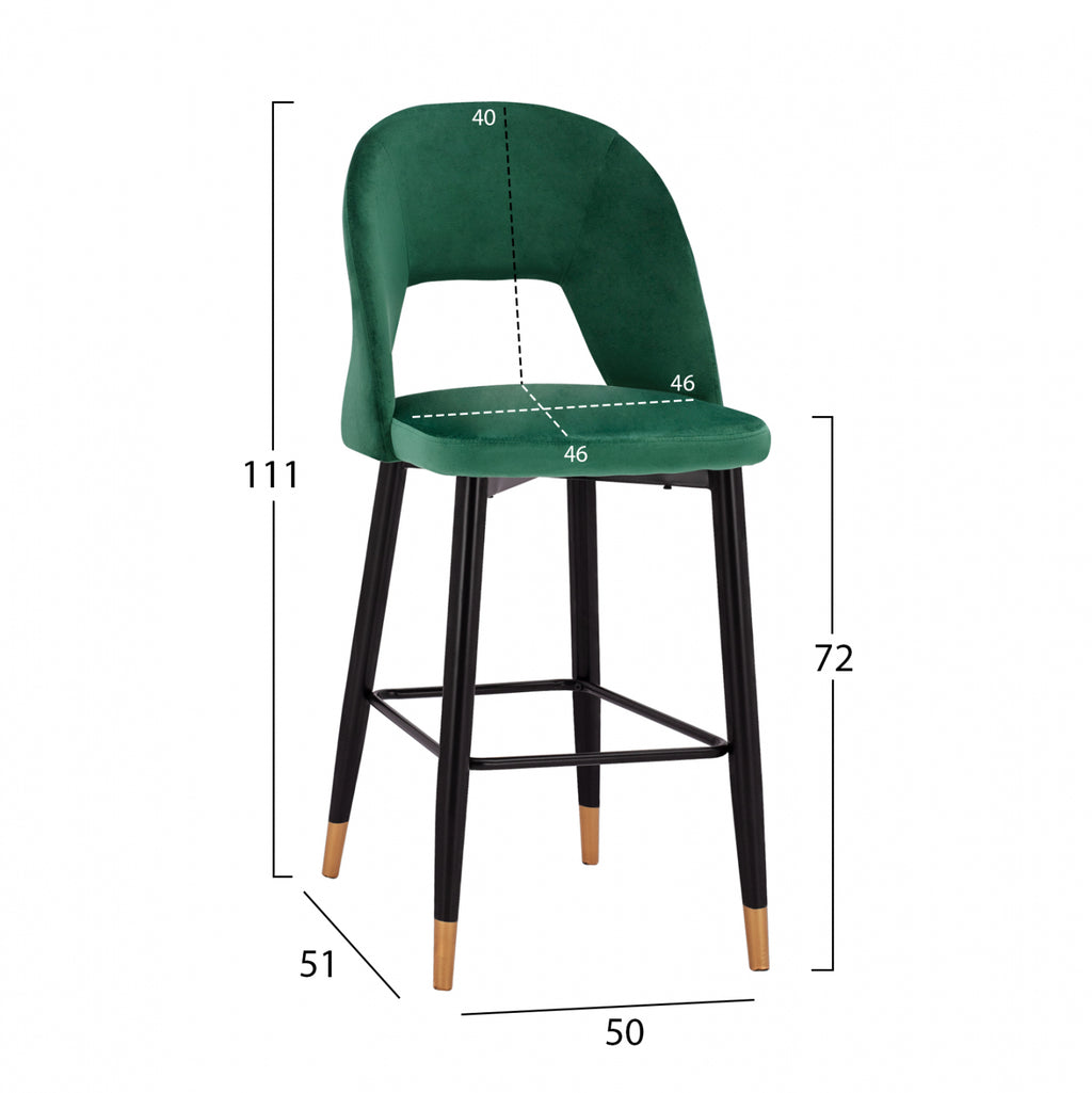 Табуретката HARPER е тапицирана с кадифена дамаска в кипарисов нюанс с метална рамка в черен матов нюанс и златни детайли. Изберете модерни табуретки, които придават на вашето пространство различен щрих. Нотка елегантност, съчетана с безброй цветови вариации и форми. Леко лъскавата материя с нейния неповторим вид и усещане не без причина е една от живите тенденции par excellence. Плюшеното покритие прави всичко различно! Размери: 50x51x111Y см. Височина на седалката: 72 см. Размер на седалката: 46х46 см. Височина на гърба: 40см.