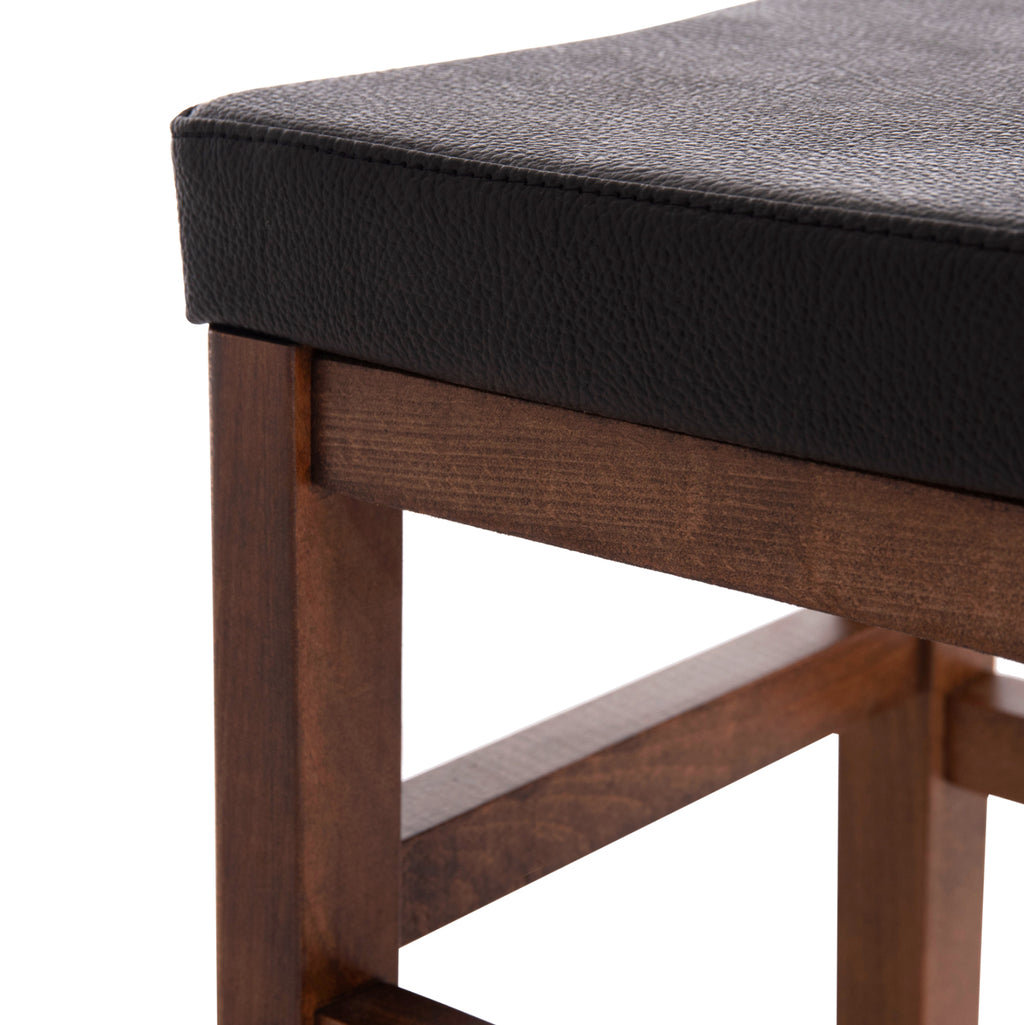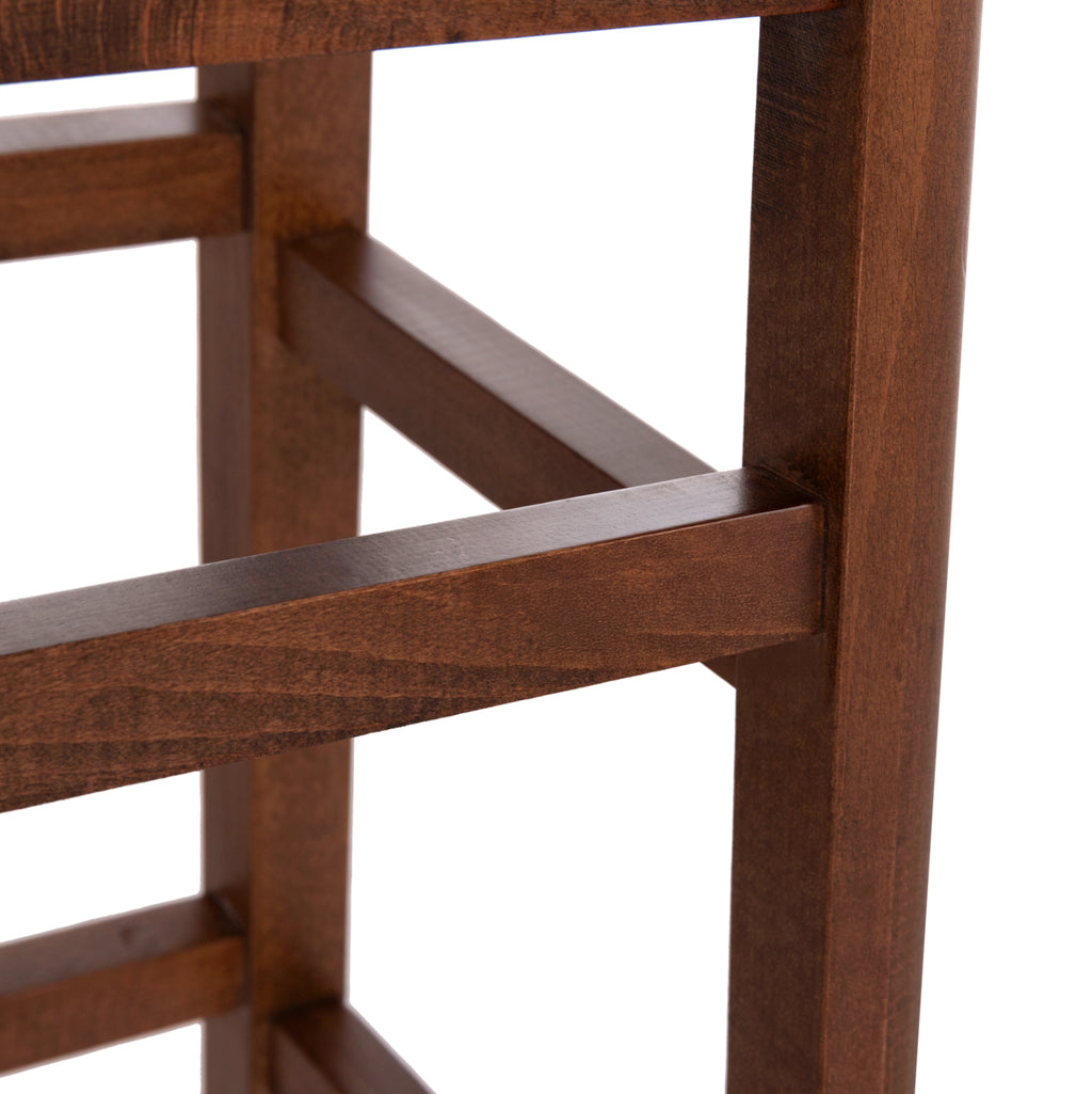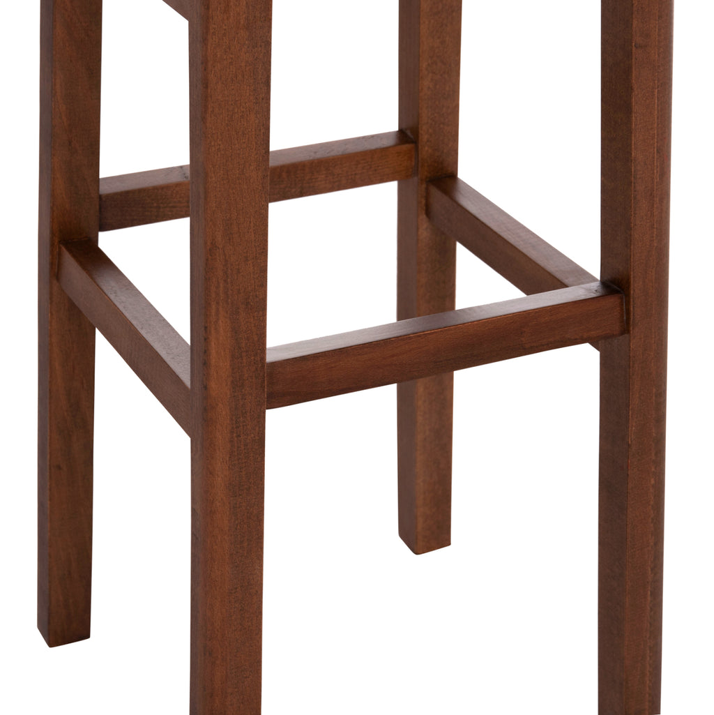 Кафе табуретка от бук в цвят орех и седалка от еко кожа в черен нюанс. Подходящ както за вътрешна, така и за външна употреба. Подходящо за механа, кафене, магазин за мезедо или узо, но и като цяло за пространства, декорирани с цветове, които ви отвеждат на пътешествие в Гърция. Много здрава и издръжлива рамка, изработена от 100% масивна букова дървесина. Предлага се в цвят, който желаете след контакт с нас. Размери: 30x34x82H см. Размери на седалката: 30х30 см. Височина на крака: 77 см. Разстояние между краката: 28,5х28 см. Внимание: Тъй като този конкретен продукт обикновено се продава за професионална употреба, моля, свържете се с нас, за да ви информираме за транспорта. Продуктът се произвежда по поръчка.