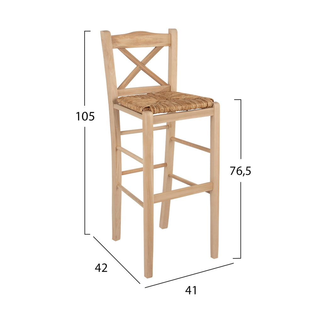 Открийте истинската средиземноморска атмосфера с бар стола LUCIUS, изработен от 100% масивна букова дървесина в класически гръцки традиционен стил. С напречна облегалка и естествена рогозка, този стол е перфектното съчетание между автентичност, здравина и вечна красота.