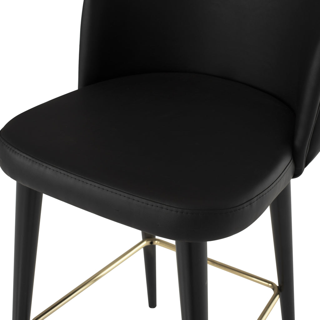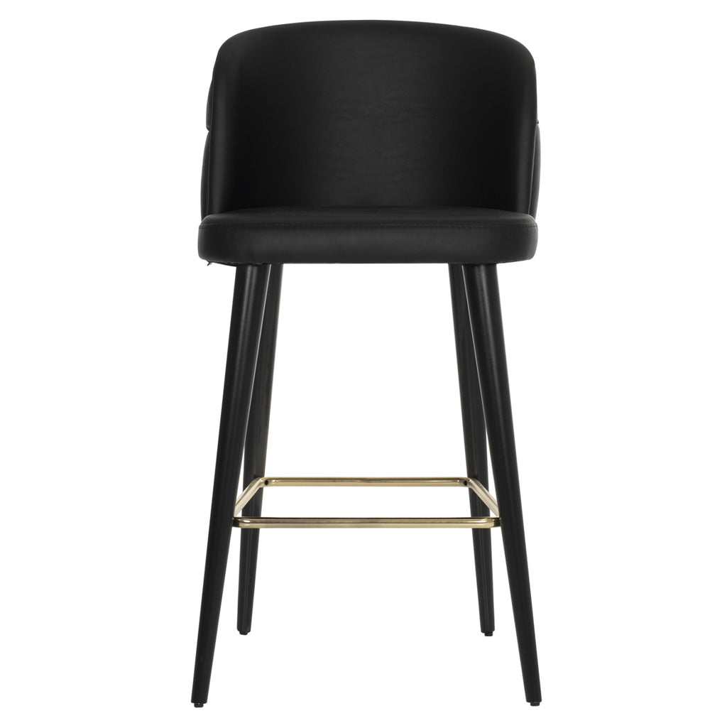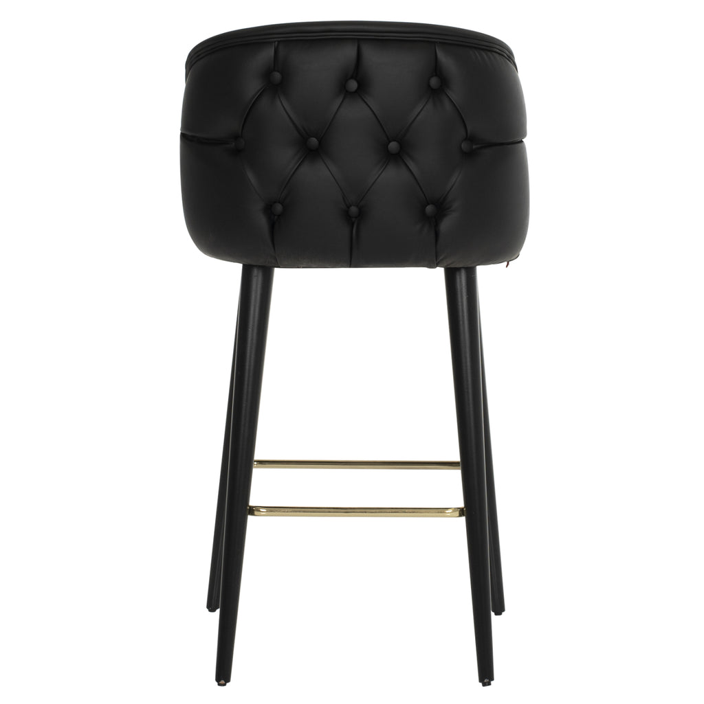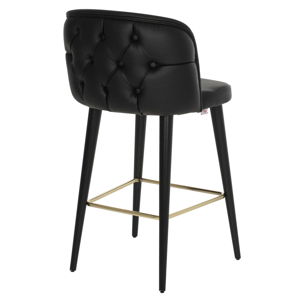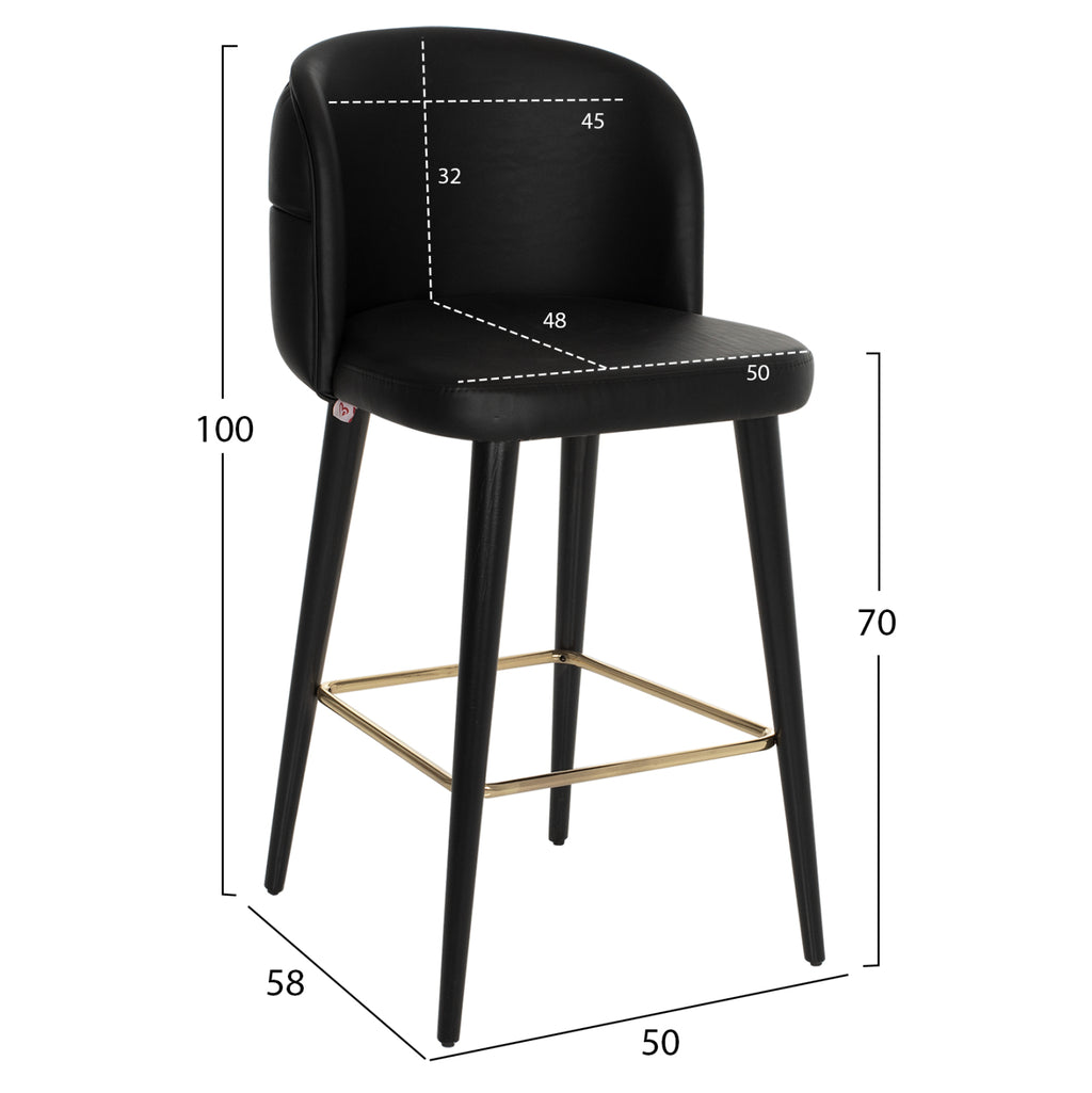 Професионален бар стол "MARCELLO" в ЧЕРЕН цвят с черни дървени крака. Краката са съединени около средата с метална правоъгълна шина в златист тон. "MARCELLO" е семпъл, качествен и елегантен на външен вид и със сигурност ще привлече окото с красивата PU кожа, с която е тапициран. Тя е висока с облегалка, която на гърба е с капитонирана техника, което подчертава специалния характер на тази табуретка. ТЕХНИЧЕСКИ ХАРАКТЕРИСТИКИ: Общи размери: 50x58x100H cm. Размери на седалката: 50х48 см. Размер на гърба: 45x32H см. Височина на седалката: 70 см. Дебелина на дунапрена на седалката: 3,7 см. Дебелина на дървото на гърба: 0,9 см. Плътност на пяната на седалката: 22 Dns (мека до средно твърда) Дебелина на дървото на седалката: 2,5 см. КОНСТРУКТИВЕН МАТЕРИАЛ: Рамката на табуретката е изработена от дърво, в резултат на което осигурява устойчивост на тегло, износване и съответно време. Краката също са дървени и в долната част има пластмасови тапи за защита на всеки под. Пълнежът на облегалката и седалката е от афролекс, който е особено удобен при продължителна употреба. Тапицерията на табуретката е изцяло от висококачествена изкуствена кожа (PU). Синтетичната кожа има текстурата на ленен плат и е еволюцията на изкуствената кожа, но с основната характеристика, че не се различава лесно от окото от истинската кожа. Съставът му е основно полиуретан и полиамидни микровлакна, за разлика от изкуствената кожа, която основно съдържа PVC. ПОДДРЪЖКА: Дървената рамка не се нуждае от специална поддръжка освен минаване с влажна кърпа. PU кожата не се нуждае от специална поддръжка, тъй като не се износва лесно, не показва "стрии", а цветът не се влияе от слънчевата радиация. Едно минаване с мека влажна кърпа е достатъчно. Ако има петно, което не излиза с мокра кърпа, тогава се използва само мек препарат с неутрално действие. ПРЕДИМСТВА: •Стабилна конструкция •Широка и удобна седалка •Поставки за крачета •Красив ватиран дизайн върху PU кожа •Лесно почистване