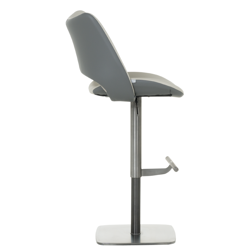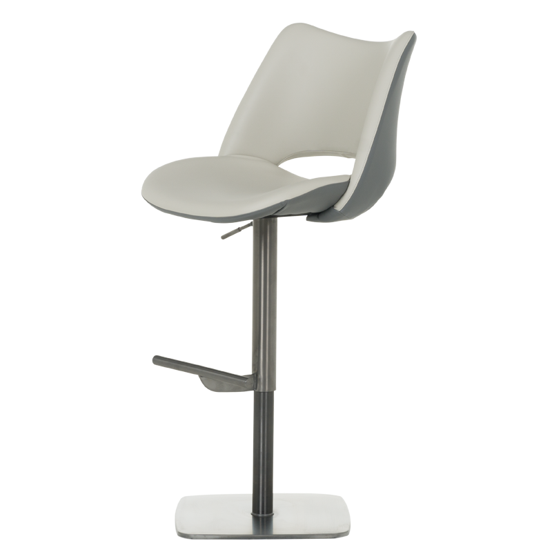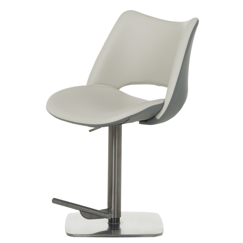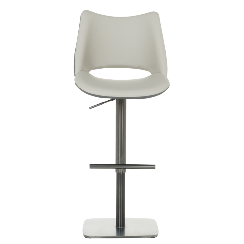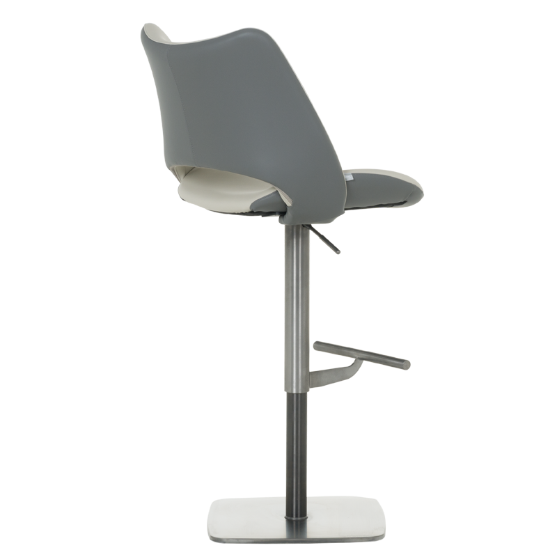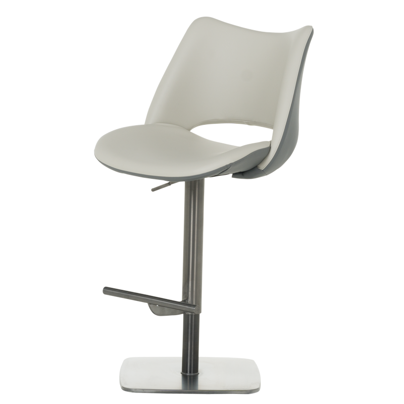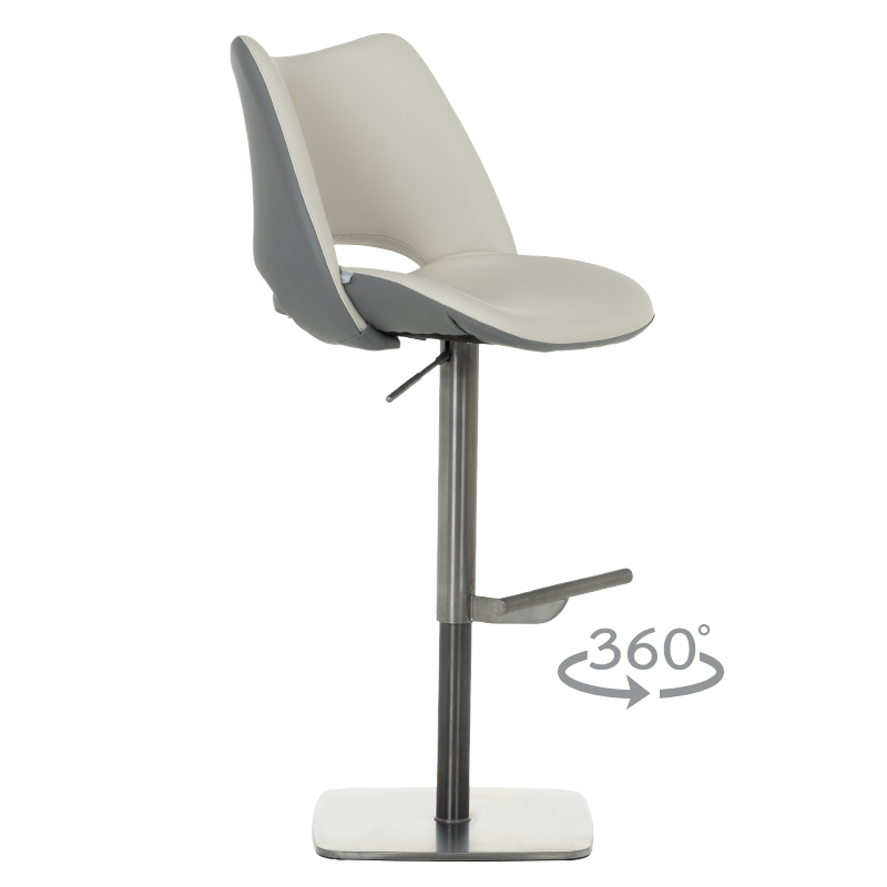 Бар стол MARIRA 2 впечатлява с изчистен и модерен дизайн, който съчетава функционалност и стил. Светлосивата еко кожа придава изтънченост и съвременно излъчване, подходящо за всяко жилищно или търговско пространство. Основата от полирана неръждаема стомана гарантира дълготрайност и стабилност, а удобната 360-градусова ротация улеснява ползването му в различни ситуации. Столът разполага с регулируема височина чрез газов амортисьор и издържа натоварване до 120 килограма, което го прави подходящ за ежедневна употреба. Пълна информация за размерите и характеристиките на модела ще намерите в таблицата в таб/поле "Техническа информация".