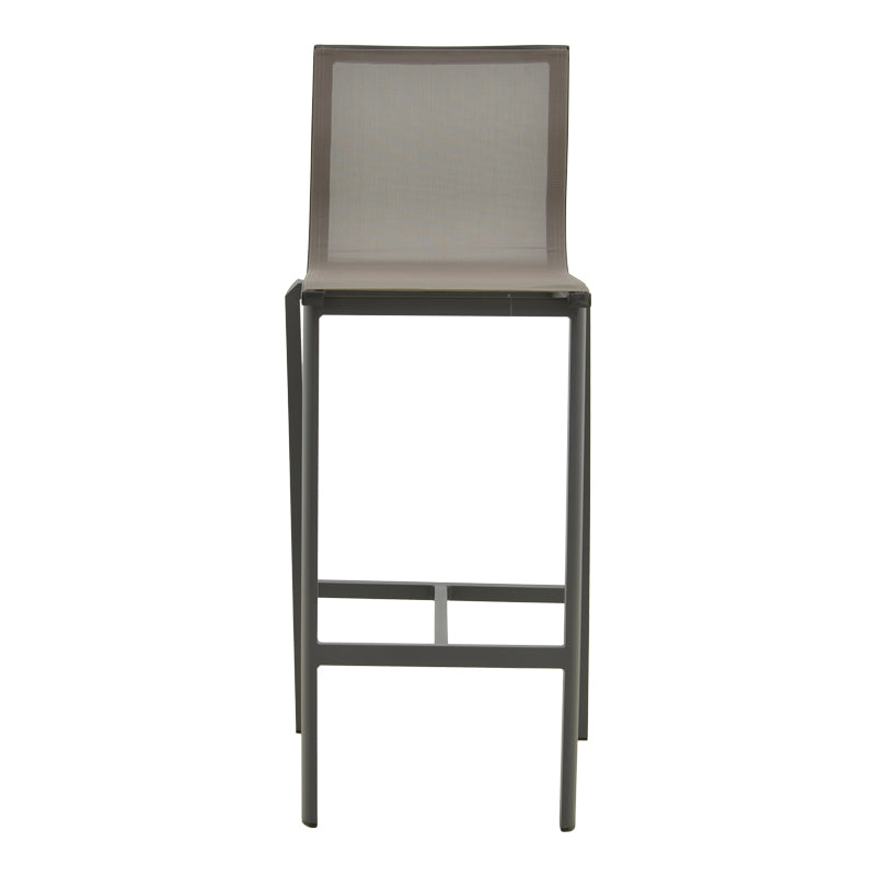 - Удобно сядане: Седалката и облегалката са изработени от издръжлива материя Textilene 2 1* в сив цвят, предлагаща комфорт и дишане – идеална за топлите дни. Textilene е перещ се и е изключително устойчив на външни условия като слънчева светлина и влажност.