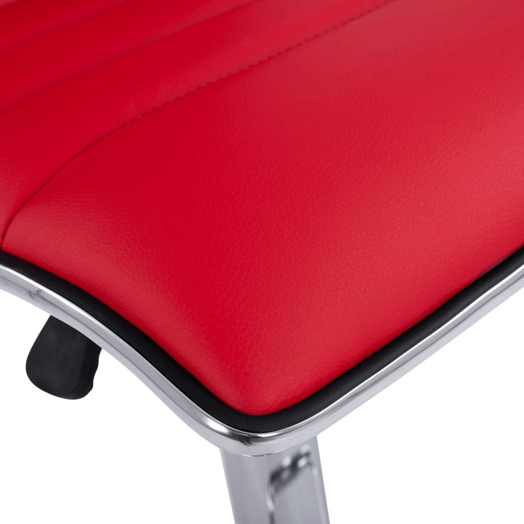 Инокс кухненски бар стол с амортисьори и червена кожена подплата Размери: 40х47.5х117см. МАКСИМАЛНА височина на гърба: 117 см. МИНИМАЛНА височина на гърба: 97см. МАКСИМАЛНА височина на седалката: 78 см. МИНИМАЛНА височина на седалката: 58 см. Размери на седалката: 40х36 см. ВНИМАНИЕ: Продуктът се предлага разглобен в опаковка от два броя и се продава по 2 броя.