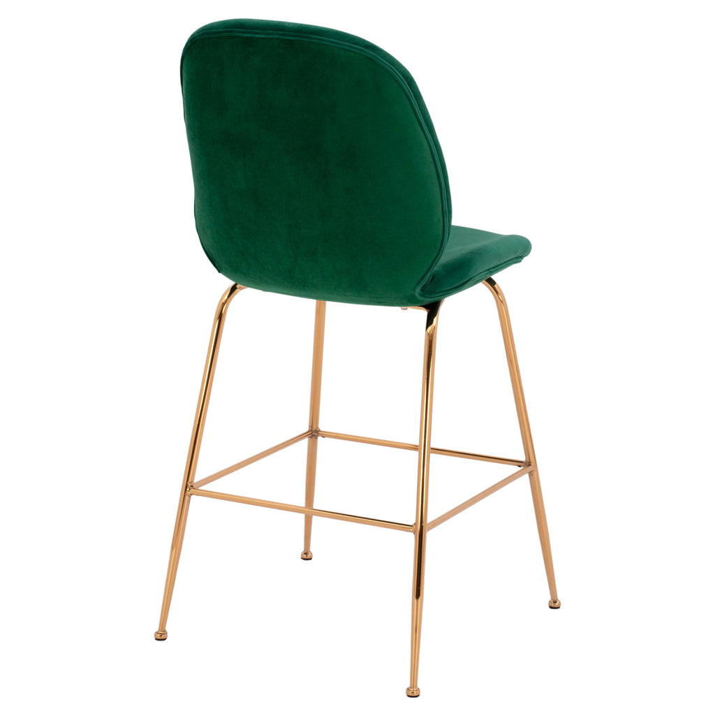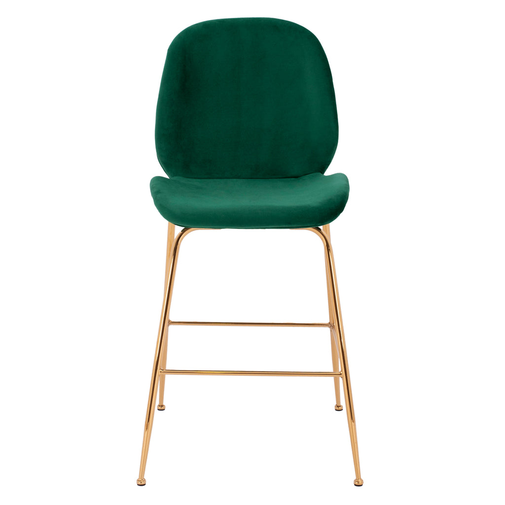 Изберете модерни табуретки, които придават на вашето пространство различен щрих. Поставете ги в кухнята си, пред плот, остров, рафт или дори в бизнес зоната си и създайте малък кът за закуска, малки ястия и дори кафе с вашата компания. Средновисока табуретка NORA, изработена от метал в златист нюанс и кадифе в цвят кипарис, уникална комбинация, която ще направи дома ви незабележим. Размери: 52х61,5х103см. Височина на седалката 66 см. Размери на седалката: 47.5x42 см. Разстояние между краката: 52х51 см. Височина на гърба: 42х44 см.