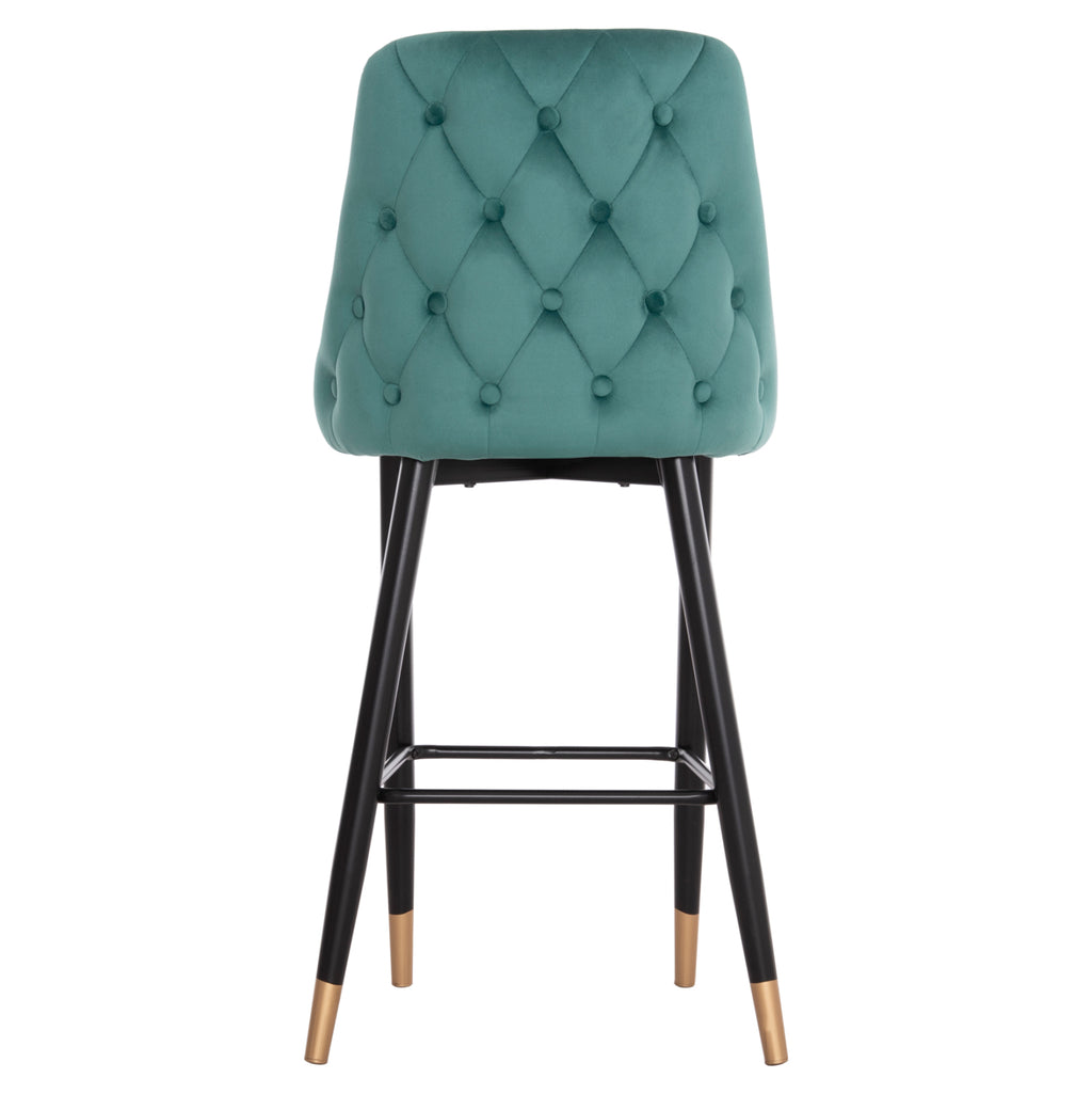 Табуретка SERENITY е тапицирана с кадифена дамаска в кипарисов нюанс с метална рамка в черен матов нюанс и златни детайли. Гърбът на табуретката е подплатен с прекрасен капитониран десен. Изберете модерни табуретки, които придават на вашето пространство различен щрих. Нотка елегантност, съчетана с безброй цветови вариации и форми. Леко лъскавата материя с нейния неповторим вид и усещане не без причина е една от живите тенденции par excellence. Плюшеното покритие прави всичко различно! Размери: 51х57х110см. Височина на седалката: 75см. Размери на седалката: 48х45 см.