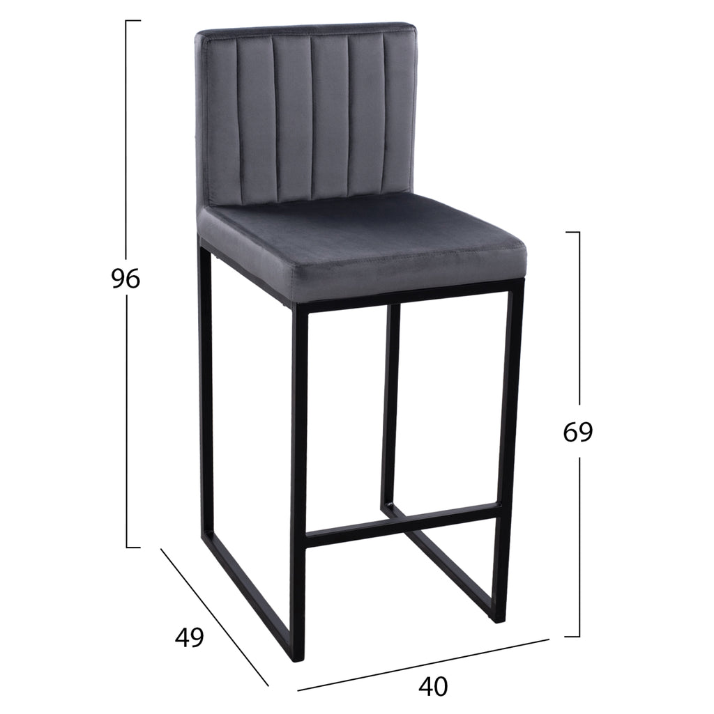 Изберете модерни табуретки, които придават на вашето пространство различен щрих. Поставете ги в кухнята си, пред плот, остров, рафт или дори в бизнес зоната си и създайте малък кът за закуска, малки ястия и дори кафе с вашата компания. Средновисоката табуретка PIPER е изработена от черен метал и сиво кадифе, уникална комбинация, която ще накара дома ви да се отличи. Размери: 40х49х96см. Височина на седалката: 69 см. Размери на седалката: 40х43 см.