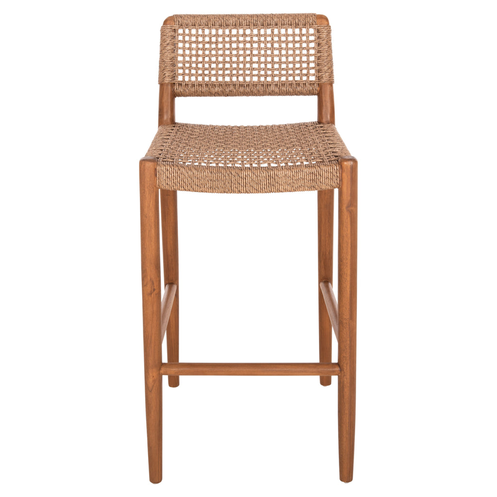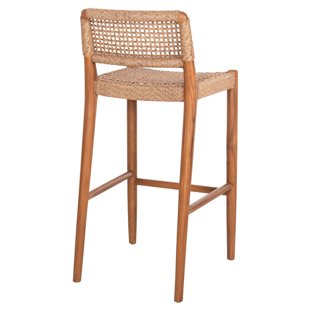 Бар стол ROSCO с висока седалка е с рамка от качествена дървесина в цвят ОРЕХ, а късата облегалка и широката седалка са изработени от майсторски изплетено въже VIRO в КАФЯВ цвят. Линиите на дизайна са елегантни и ориентирани към комфорта на потребителя, като типичен пример е наличието на връзките на краката на табуретката, които служат и като подложка за крака.