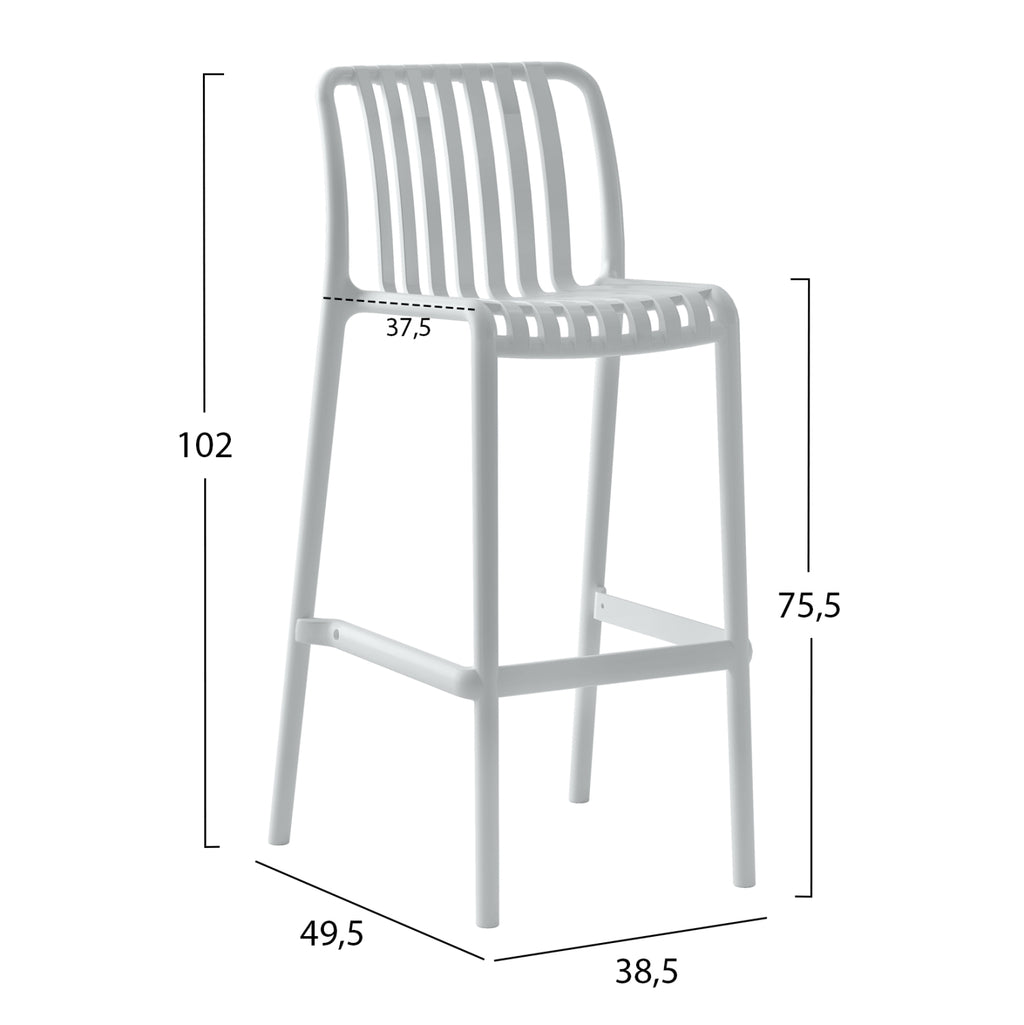 Табуретката CONVEE е семпъл бар стол, който има всичко, което бихте искали от подобна мебел. Той е качествен и елегантен на външен вид и определено привлича вниманието. Цялата табуретка е изработена от цели полипропиленови пръти в БЯЛ цвят със сравнително ниска облегалка. Също така, краката са съединени с много практична поставка за крака. Цялата конструкция е лека и удобна и ще се превърне в любимата седалка във всяко пространство, където бъде поставена, благодарение на своята практичност, която се подсилва от факта, че табуретката може да се подрежда една върху друга. ТЕХНИЧЕСКИ ХАРАКТЕРИСТИКИ: 38.5х49.5х102см. Седалка: 38x37.5cm Височина на седалката: 75.5cm МАТЕРИАЛИ НА ИЗРАБОТКА: Цялата табуретка е изработена от подсилен полипропилен. Полипропиленът е особено устойчив на тегло и вода, като същевременно има голяма устойчивост на температури до 125 градуса по Целзий. Освен това неговата издръжливост не се ограничава до тегло, вода и температура, но е необичайно устойчив на много химически разтворители, киселини и основи. ПОДДРЪЖКА: Мебелите от полипропилен се почистват лесно с влажна кърпа. Ако са на открито, могат да се почистват директно с течаща вода. ** Цветопредаването на продукта може леко да се различава от неговото фотографско представяне на вашия екран.