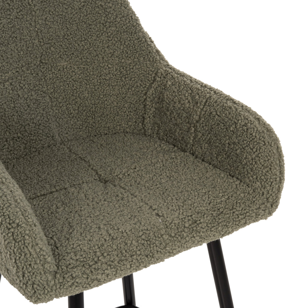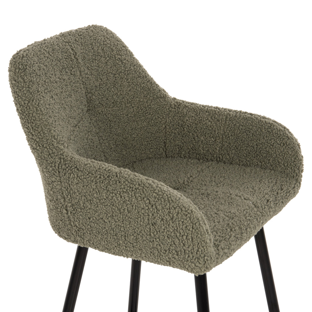 Професионален бар стол STRIKE в цвят ФЪСТЪК с метални крака ЧЕРНИ. Краката са съединени около средата с метална релса. Табуретката е семпла, качествена и елегантна на външен вид и със сигурност ще привлече вниманието с меката и топла дамаска ТЕДИ, която е тапицирана. Той е висок с облегалка, която прегръща тялото, докато седалката има повдигнати страни, които създават ниски ръце, което подчертава специалния характер на тази табуретка. ТЕХНИЧЕСКИ ХАРАКТЕРИСТИКИ: Общи размери: 50x50x94.5Y см. Височина на седалката: 64 см. Височина на ръцете: 76 см. Размери на седалката: 36х38 см. Размери на гърба: 41х33 см. Разстояние между краката: 38х46 см. Височина на постамента: 20см. МАТЕРИАЛ НА ИЗРАБОТКА: Краката са метални с електростатична боя. Електростатичното боядисване е процес на сухо покритие, използван като метално покритие. Електростатичното боядисване е нанасяне на сух прах чрез електростатичен процес, който след това се „свързва“ към метала чрез топлина. Подходящ е както за вътрешни, така и за външни приложения. Подплатата е изработена от висококачествена материя ТЕДИ. Платът Теди често се прави от различни тъкани. В наши дни преобладава синтетичното теди, т.е. изработено от полиестер в комбинация с акрил. И след това се боядисва в желания цвят. Тази материя може да се опише като мека, пухкава, еластична и има вид на овца. Освен това е издръжлив, топъл и може да абсорбира влагата. ПОДДРЪЖКА: В повечето случаи платът на Теди може просто да се почисти с прахосмукачка. ПРЕДИМСТВА: •Стабилна конструкция •Широка и удобна седалка •Крака •Специален външен вид с дамаската ТЕДИ **Табуретката се доставя разглобена във фабрична опаковка