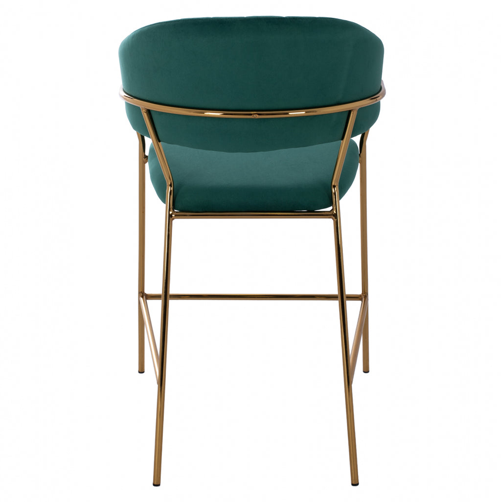 Средновисока табуретка Theodore от кадифена дамаска в цвят кипарис с позлатена рамка 60x55x100 см. Идеална табуретка, която ще украси вашия дом, но и вашето бизнес пространство. Неговият семпъл и модерен дизайн ще допълни всеки интериор. Луксозна конструкция, която ще разкраси вашето пространство. Отличава се с издръжлива тапицерия от плюшен плат и метална рамка, позлатена, фабрично монтирана, което прави продукта изключително стабилен, издръжлив и подходящ дори за професионална употреба. Богато тапицираните седалки, облегалки и поставки за крачета правят табуретките с облегалки идеалното място за почивка. Размери: 60х55х100см. Размери на седалката: 47х42 см. Размери на гърба: 35х30см. Височина на седалката: 63 см. Височина на крака: 60 см. Височина на ръцете: 85см. Разстояние между краката: 55х52 см. Продуктът се предлага разглобен във фабрична опаковка (необходим е монтаж, седалката и облегалката на рамката).