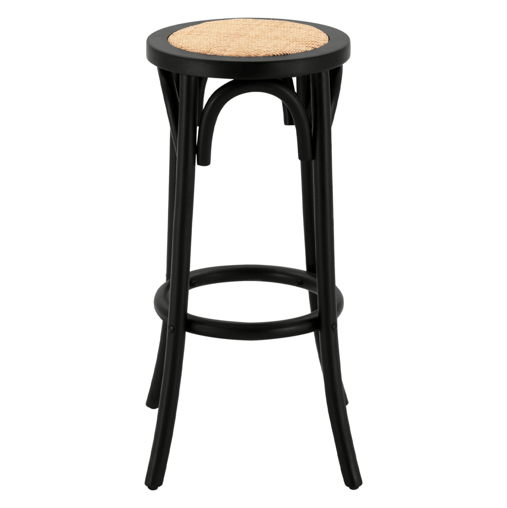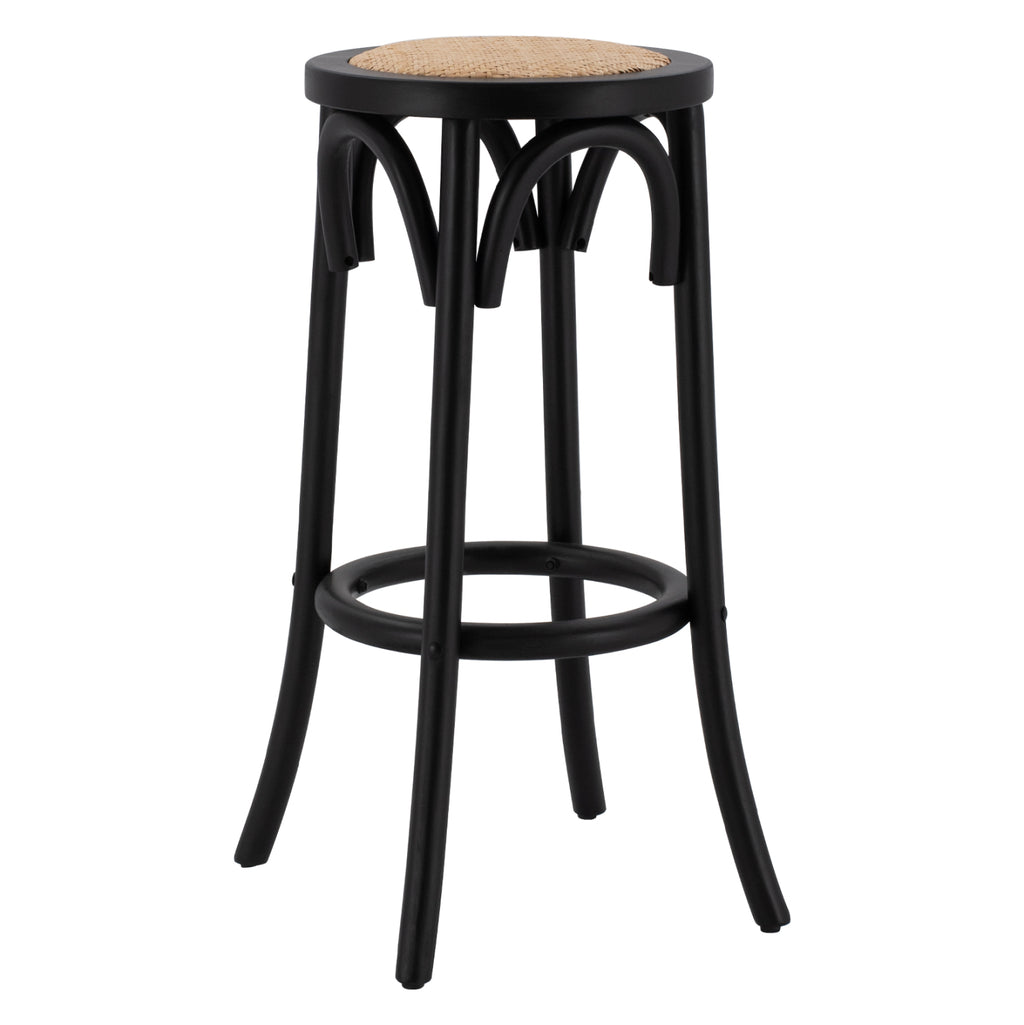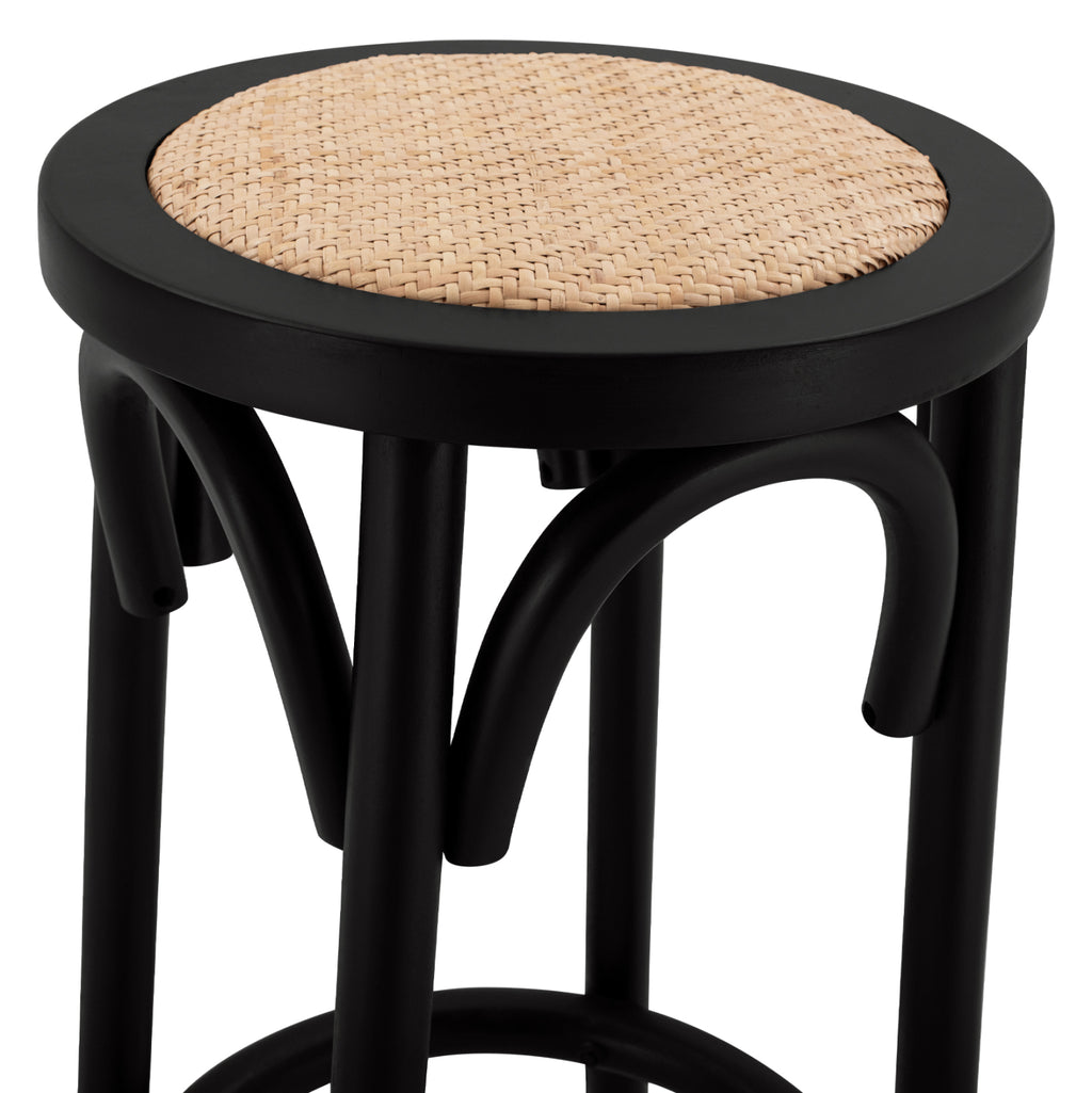 Табуретка без облегалка, изработена от високоздрава букова дървесина в черен нюанс. Седалката на табуретката е изработена от ръчно тъкана ракита. Също така е фабрично монтиран и е подходящ за оборудване на бизнес помещения. Размери: 36х36х72см. Височина на седалката: 71 см. Размери на седалката: Φ33,5 см. Разстояние между краката: 36х36 см. Височина на крака: 68 см. ФАБРИЧНО МОНТАЖЕН