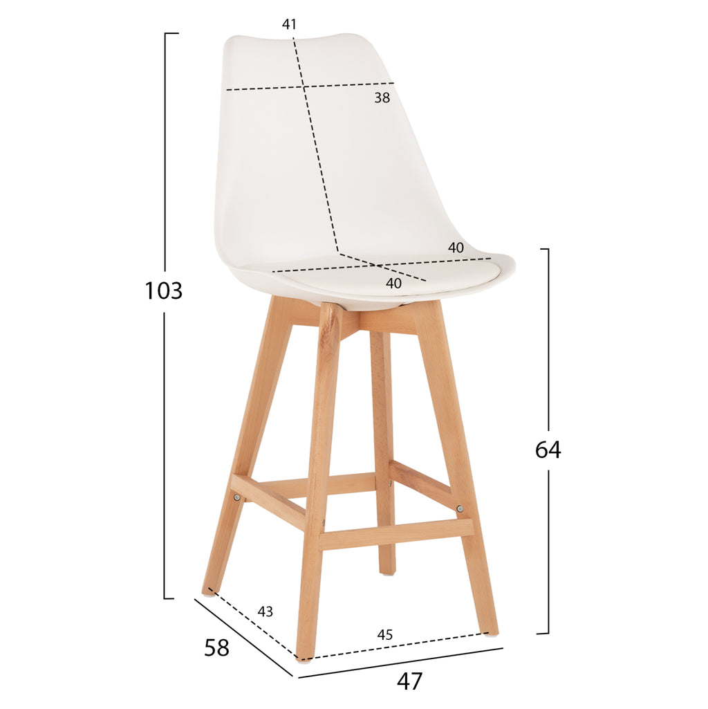 Бар стол VEGAS е красив бар стол, който има всичко, което бихте искали от подобна мебел. Той е със среден ръст, качествен и елегантен на вид и със сигурност ще привлече окото. Седалката е с възглавница, а заедно с облегалката е изработена от едно парче полипропилен в БЯЛ цвят. Гърбът е висок и удобен, а изцяло полипропиленовата конструкция е монтирана върху дървена рамка в НАТУРАЛЕН дървесен цвят. Цялата конструкция е удобна и благодарение на своята практичност ще се превърне в любимата седалка във всяко пространство, където се постави. ТЕХНИЧЕСКА ХАРАКТЕРИСТИКА: РАЗМЕРИ: 47х58х100Н см. Височина на седалката: 64 см. Размери на седалката: 40х40 см. Размер на гърба: 38х41см. Разстояние между краката: 45х43 см. МАТЕРИАЛИ НА ИЗРАБОТКА: Рамката на табуретката е от букова дървесина. Букът е твърдо, здраво, еластично и тежко дърво с малки пори. Това дърво е елегантно и има червеникавокафяв цвят. Използва се предимно за производство на мебели. Седалката и облегалката от една част са изработени от подсилен полипропилен. Полипропиленът е особено устойчив на тегло и вода, като същевременно има голяма устойчивост на температури до 125 градуса по Целзий. Освен това неговата издръжливост не се ограничава до тегло, вода и температура, но е необичайно устойчив на много химически разтворители, киселини и основи. ПОДДРЪЖКА: Благодарение на издръжливите строителни материали на табуретката, поддръжката е лесна. Едно избърсване с кърпа е достатъчно, за да се излъска столчето. ПРЕДИМСТВА: Бар стол VEGAS ще задоволи и най-претенциозния потребител. Неговата проста конструкция и качествено покритие като цяло ще оставят най-добри впечатления и всеки ще иска да се наслади на удобната му седалка. **Табуретката се доставя разглобена във фабрична опаковка