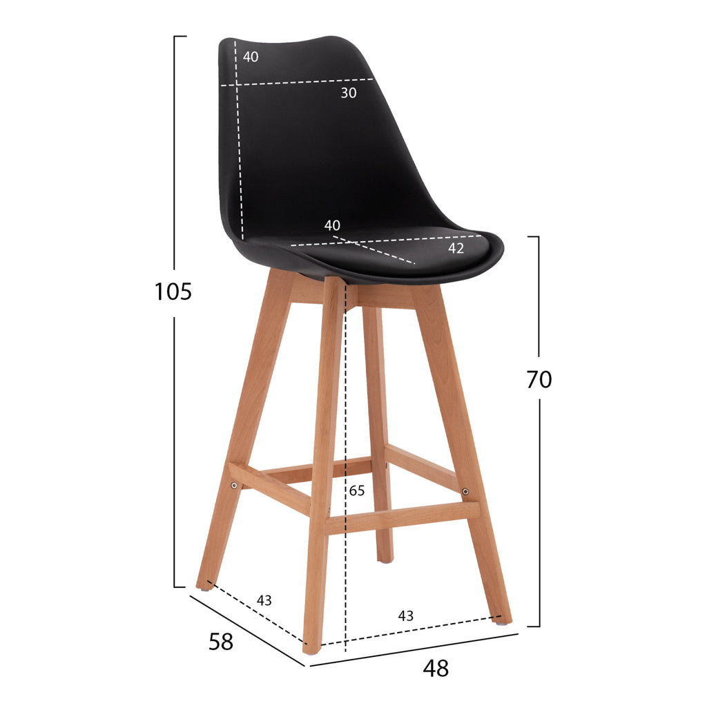 Изберете модерни табуретки, които придават на вашето пространство различен щрих. Поставете ги в кухнята си, пред плот, остров, рафт или дори в бизнес зоната си и създайте малък кът за закуска, малки ястия и дори кафе с вашата компания. Табуретката VEGAS е изработена от естествено дърво и черен полипропилен, уникална комбинация, която ще направи дома ви незабележим. Размери: 48x58x105H см. Височина на седалката: 70 см. Размери на седалката: 42х40 см. Размер на гърба: 30x40H см. Височина на крака: 65 см. Разстояние между краката: 43х43 см. Цвят: Черен ВНИМАНИЕ: Продуктът се предлага разглобен в опаковка от 4 бр.