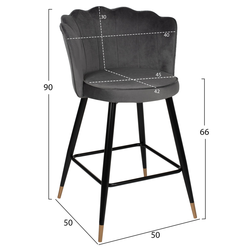 Професионален бар стол "ВЕСНА" в СИВ цвят с черна метална конструкция. Металните крака са съединени около средата с черна метална релса. 'VESNA' е семпла, качествена и елегантна на външен вид и със сигурност ще привлече окото с плюшената дамаска, с която е тапицирана. Той е средно висок с облегалка, която има вид на отворена черупка, придаваща особена естетика на пространството. ТЕХНИЧЕСКИ ХАРАКТЕРИСТИКИ: Общи размери: 50x50x90H см. Височина на седалката: 66 см. Височина на ръцете: 90см. Размери на седалката: 45х42 см. Размери на гърба: 40х30см. МАТЕРИАЛ ЗА ИЗРАБОТКА: Рамката на табуретката е метална, в резултат на което осигурява устойчивост на тегло, износване и съответно време. Пълнежът на облегалката и седалката е от афролекс, който е особено удобен при продължителна употреба. Тапицерията на табуретката е изцяло от кадифена дамаска с отлично качество. Това е мека, спокойна, възхитителна и елегантна материя, на която е невъзможно да се устои. Положителното е, че лесно се хармонизира с всякакъв вид декорация, придавайки на пространството финес и елегантност. ПОДДРЪЖКА: Металните части не се нуждаят от специална поддръжка, освен забърсване с влажна кърпа. Кадифената тъкан трябва да се почиства веднъж седмично с прахосмукачка. Прикрепете мека четка, задайте меката програма на вашата прахосмукачка и почистете цялата повърхност по посока на зърното. Ще видите, че веднага прахта ще бъде отстранена и купчината плат ще бъде като нова. В никакъв случай не трябва да търкате кадифена тъкан. Дори и да трябва да премахнете петно, не го търкайте. Навлажнете мека кърпа с вода и нанесете локално върху петното. Идеален избор за почистване на кадифе е и кожата (т.е. кърпите, с които сушим колата). ПРЕДИМСТВА: •Стабилна конструкция •Широка и удобна седалка •Крака •Красива с капитониран дизайн и плюшена материя •Лесна за почистване